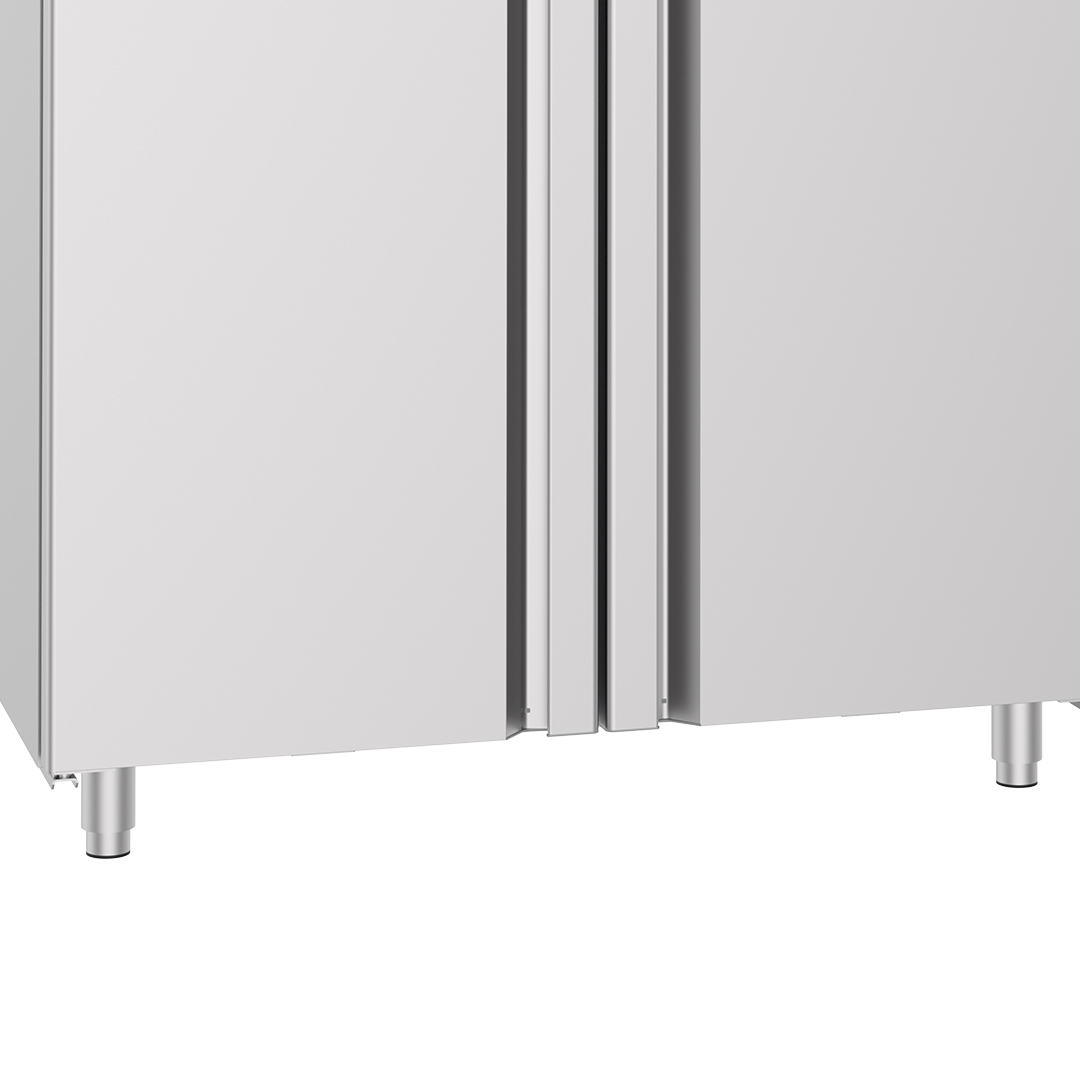 Met een interne diepte van 65 cm (GN2/1) biedt het voldoende ruimte. Het handige ontdooisysteem zorgt voor probleemloos onderhoud, terwijl automatische verlichting bij het openen van de deur een vleugje elegantie toevoegt. Gemakkelijk verwijderbare en onderhoudsvriendelijke afdichtingen maken dit apparaat een praktische keuze.