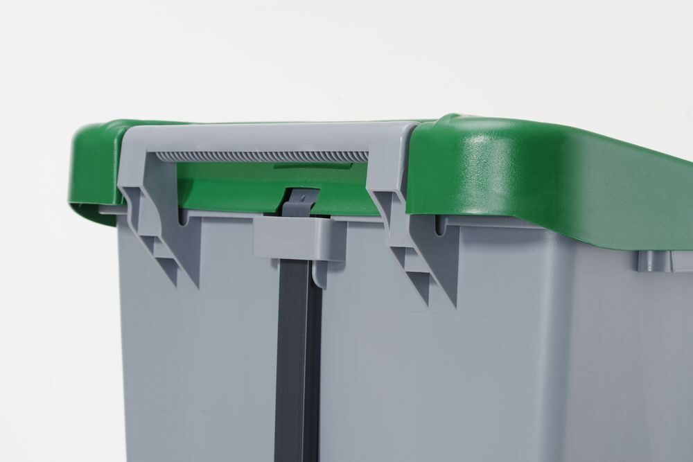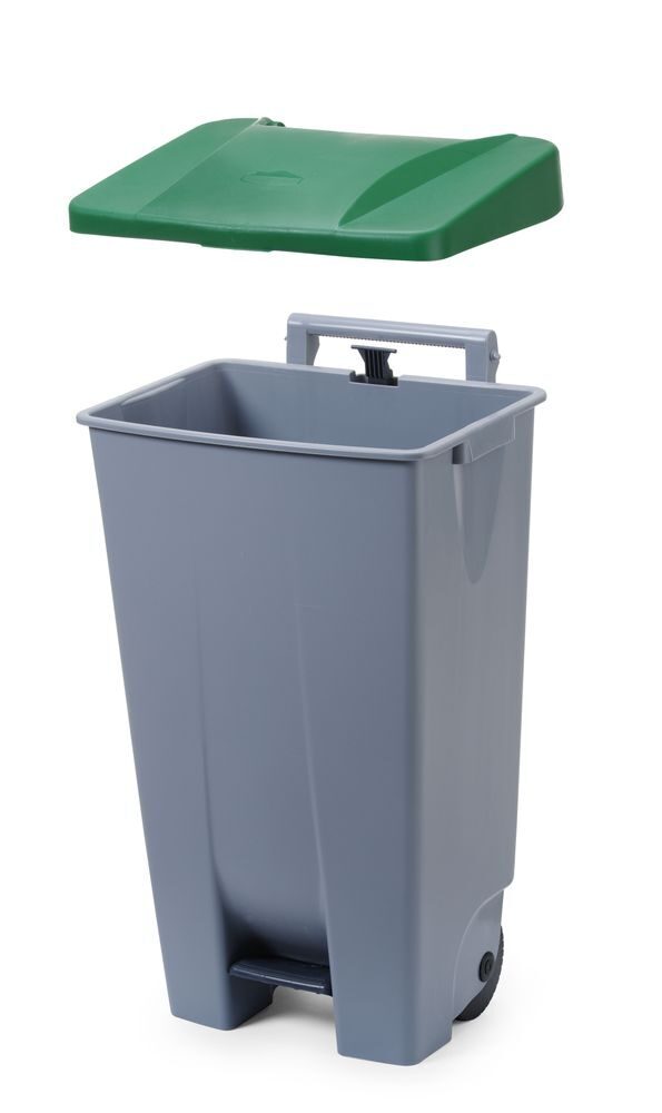 Deksels afzonderlijk verkrijgbaar in 6 kleuren.De HENDI afvalbak is gemaakt van duurzaam polypropyleen en beschikt over een handsfree dekselmechanisme met pedaalbediening. Het is voorzien van een geïntegreerde handgreep en wielen voor soepele mobiliteit. Deksels zijn afzonderlijk verkrijgbaar in 6 kleuren.