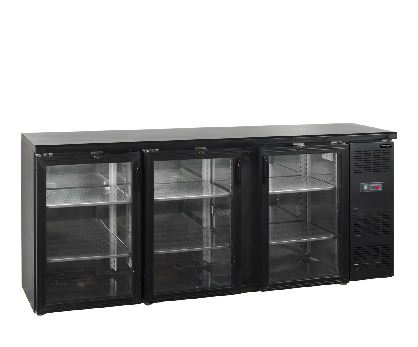 Barkast - 3 glasdeuren 2002mm met compressor unit.