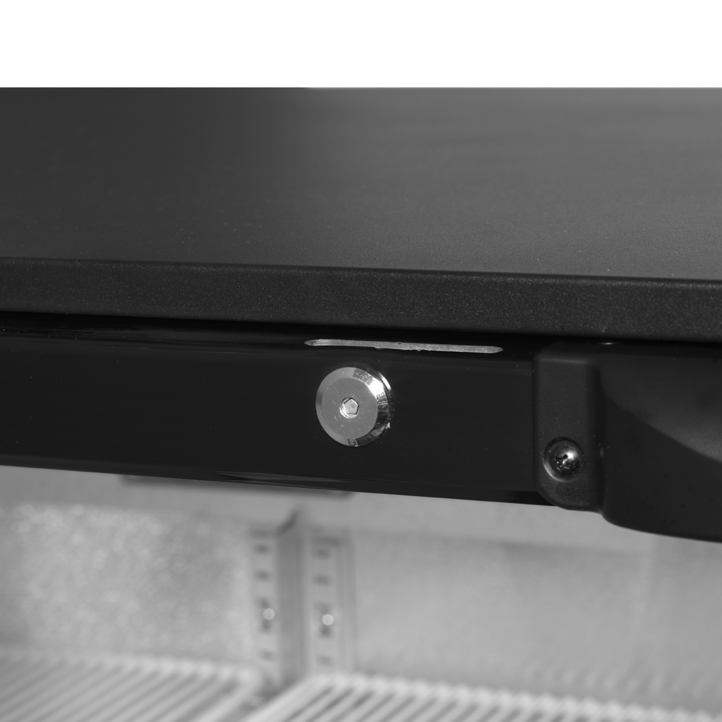 De DB-serie backbars wordt geleverd met 1, 2 of 3 deuren met dubbel gehard glas. Kies tussen schuifdeuren of draaideuren. De backbar heeft een zwarte buitenzijde, een aluminium interieur en wit geplastificeerde draadplanken voor eenvoudig onderhoud. Met geventileerde koeling, eenvoudig te regelen met een elektronische thermostaat. Ideaal voor drukke baromgevingen. De nieuwe serie backbars is zeer energiezuinig en verbruikt gemiddeld 56% minder energie dan de vorige modellen uit dezelfde serie.