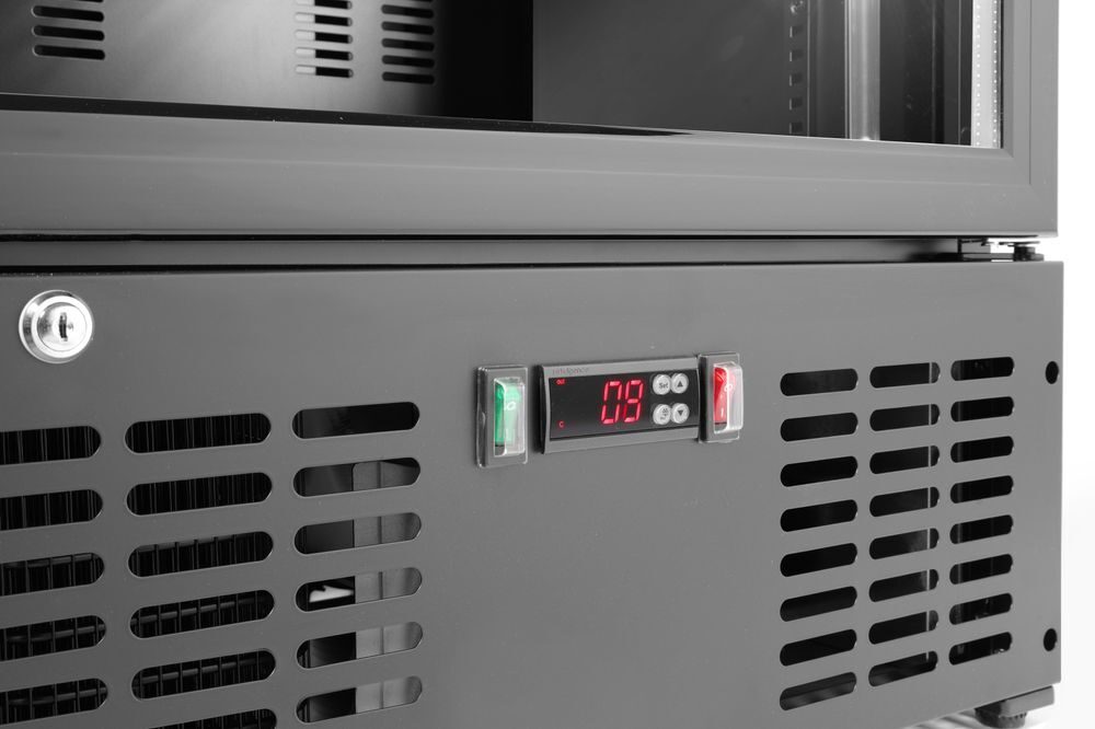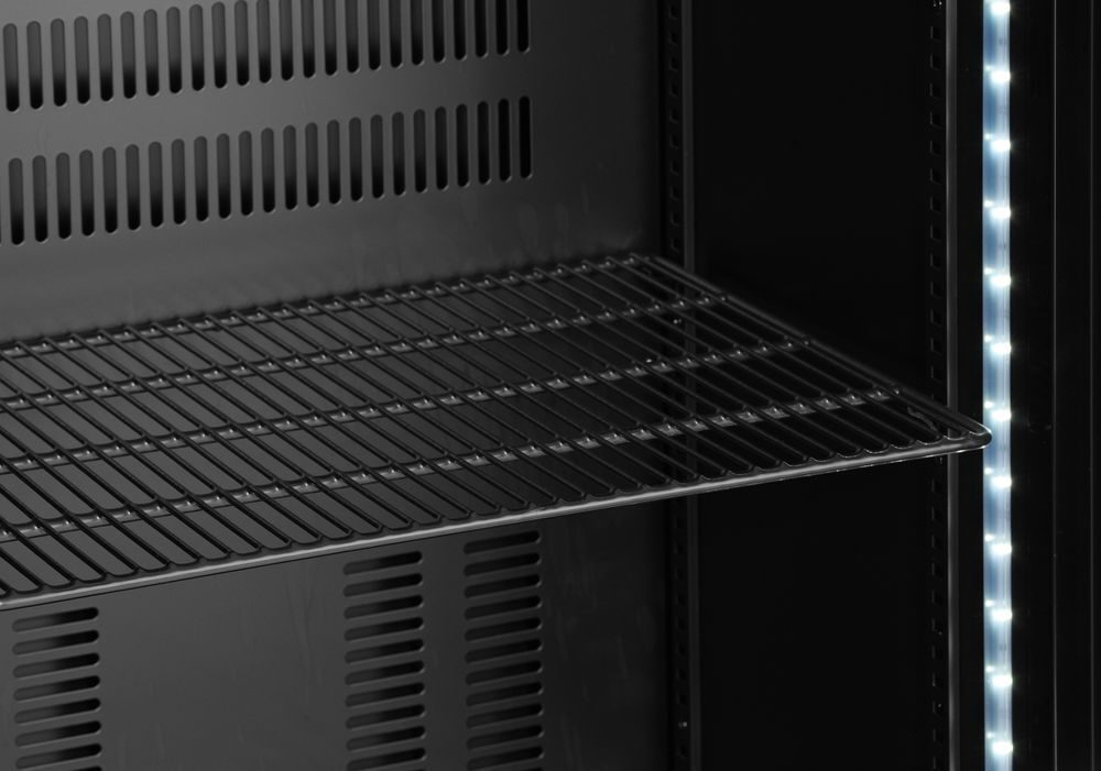 Energie-efficiëntie is geclassificeerd volgens EN 16902:2016, de Europese norm voor drankkoelers.4 verstelbare zwarte schappen met PVC-coating met afmetingen van 492 x 353 mm.