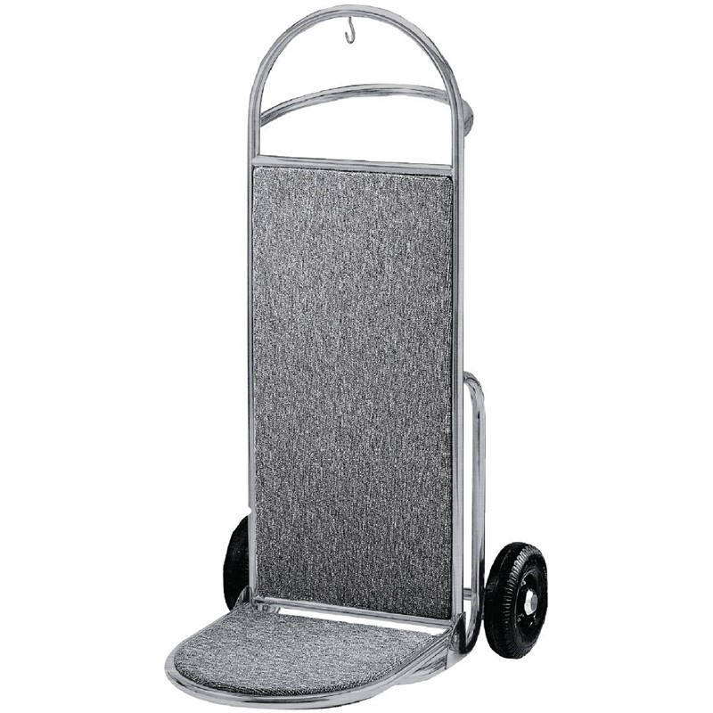 Deze eigentijdse en elegante steekwagen is ideaal voor gebruik in openbare ruimtes en recepties in hotels, resorts en pensions. Gemaakt van mooi geborsteld RVS en met een hoge capaciteit van 150kg. Wordt volledig gemonteerd geleverd en is voorzien van een haakje, een handgreep en 2 bokwielen voor eenvoudig transport. De grijze bekleding helpt de bagage te beschermen.