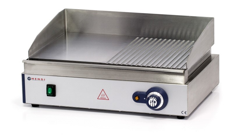 - Grill oppervlak 518x328 mm, links 259 mm glad en rechts 259 mm geribd