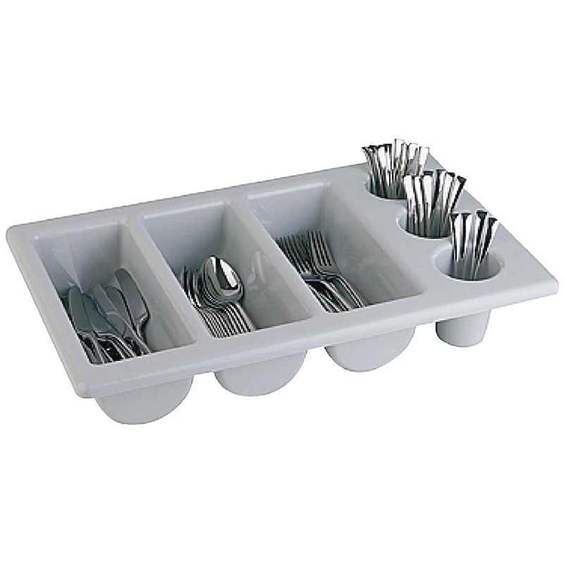 Kunststof GN1/1 bestekbak voorzien van 3 vakken en 3 gaten.