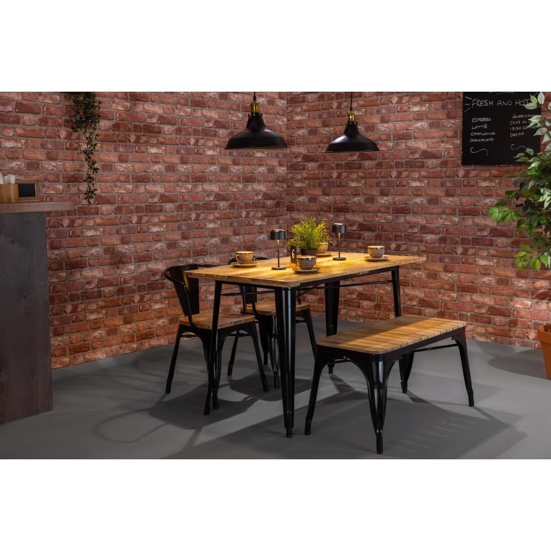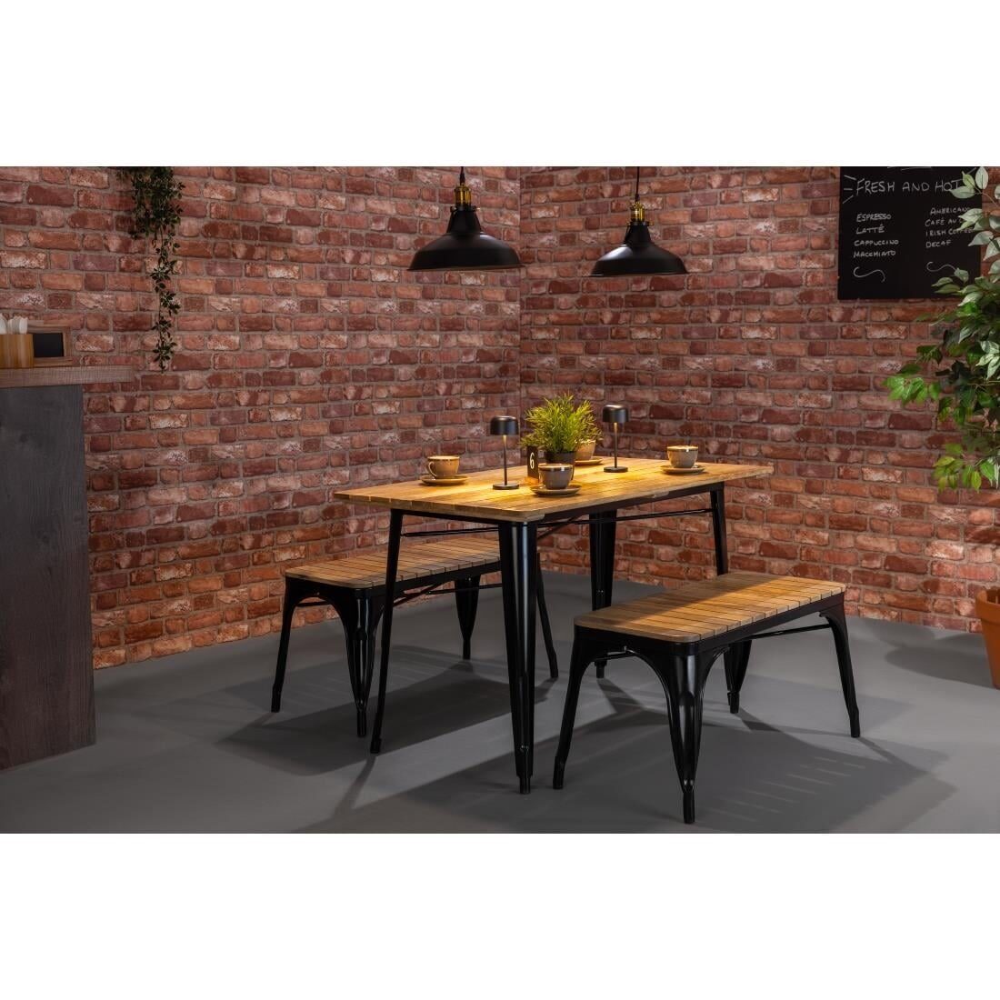- Donkergrijs gepoedercoatstalen frame en mangohouten blad met latten