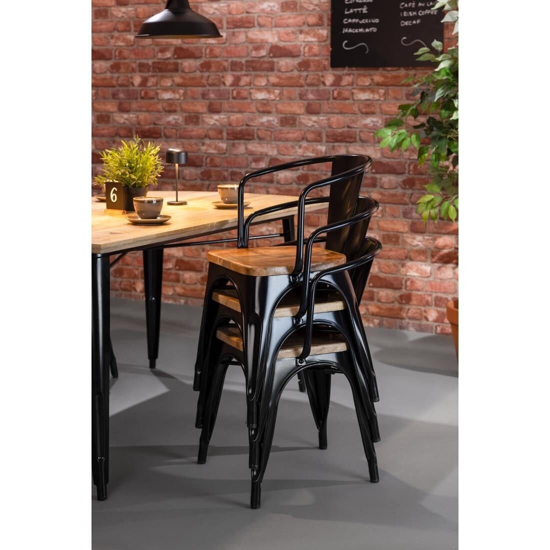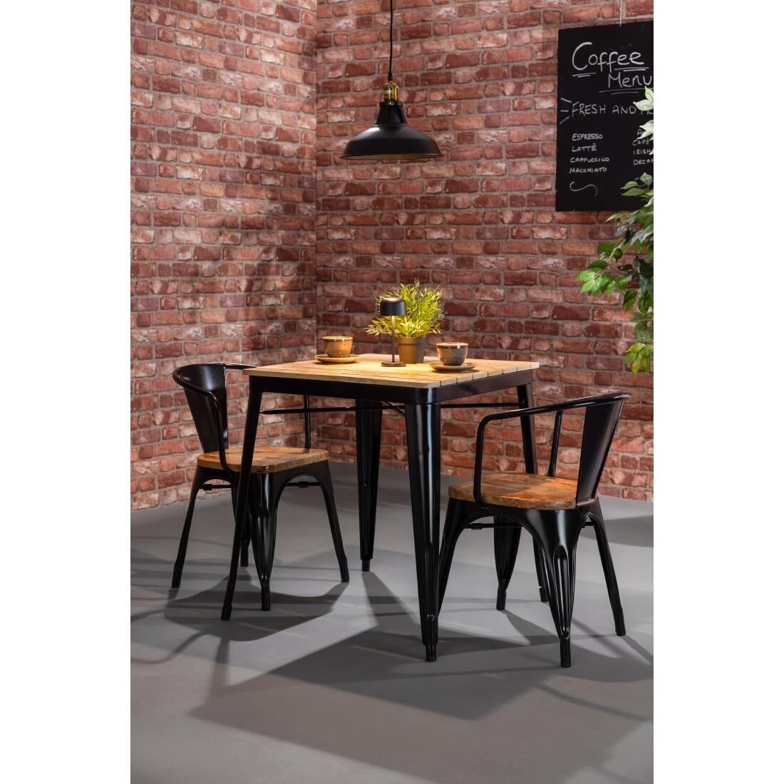 Bolero Bistro Curve Armstoelen met Houten Zitting Zwart (4 stuks) - HZ804