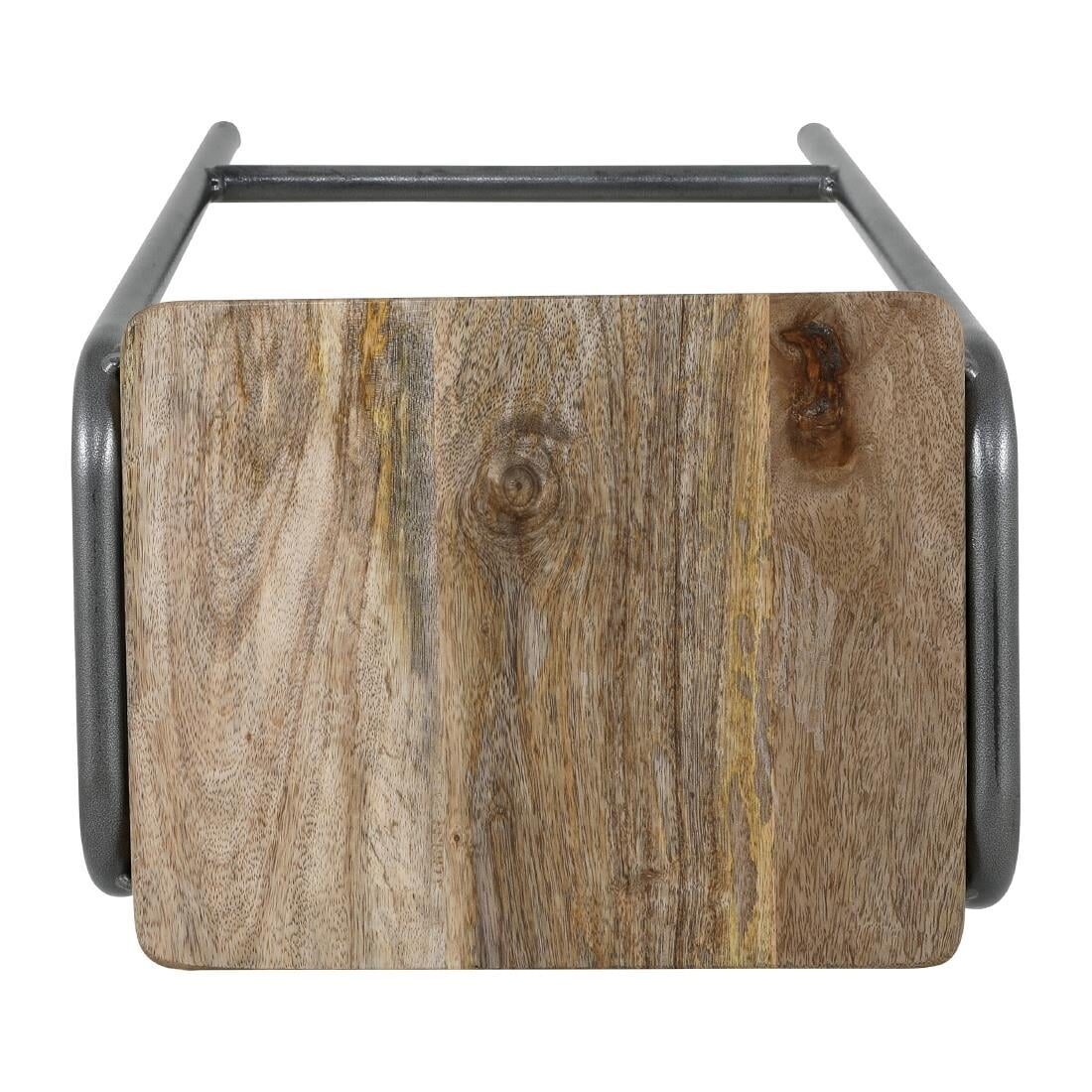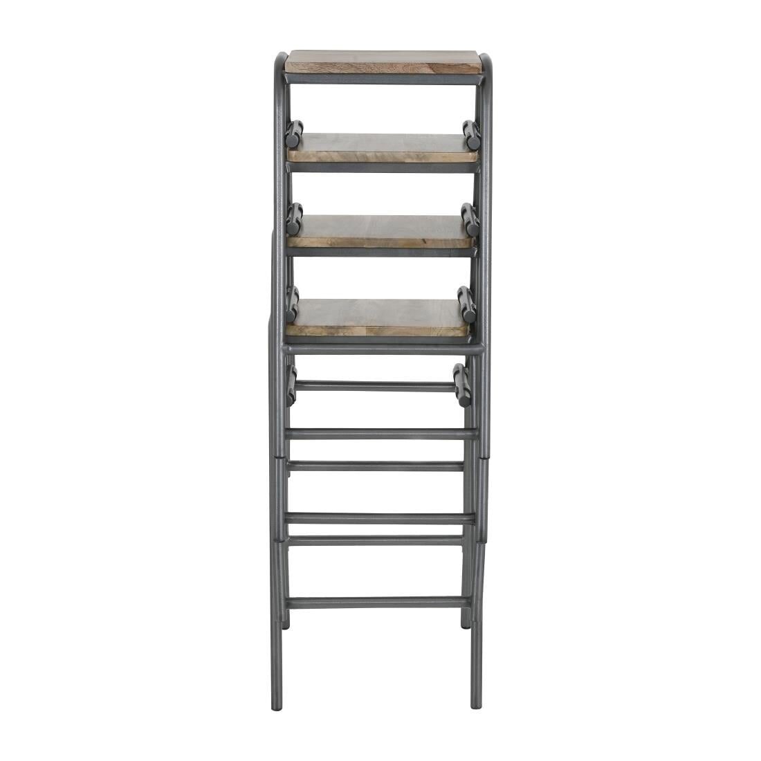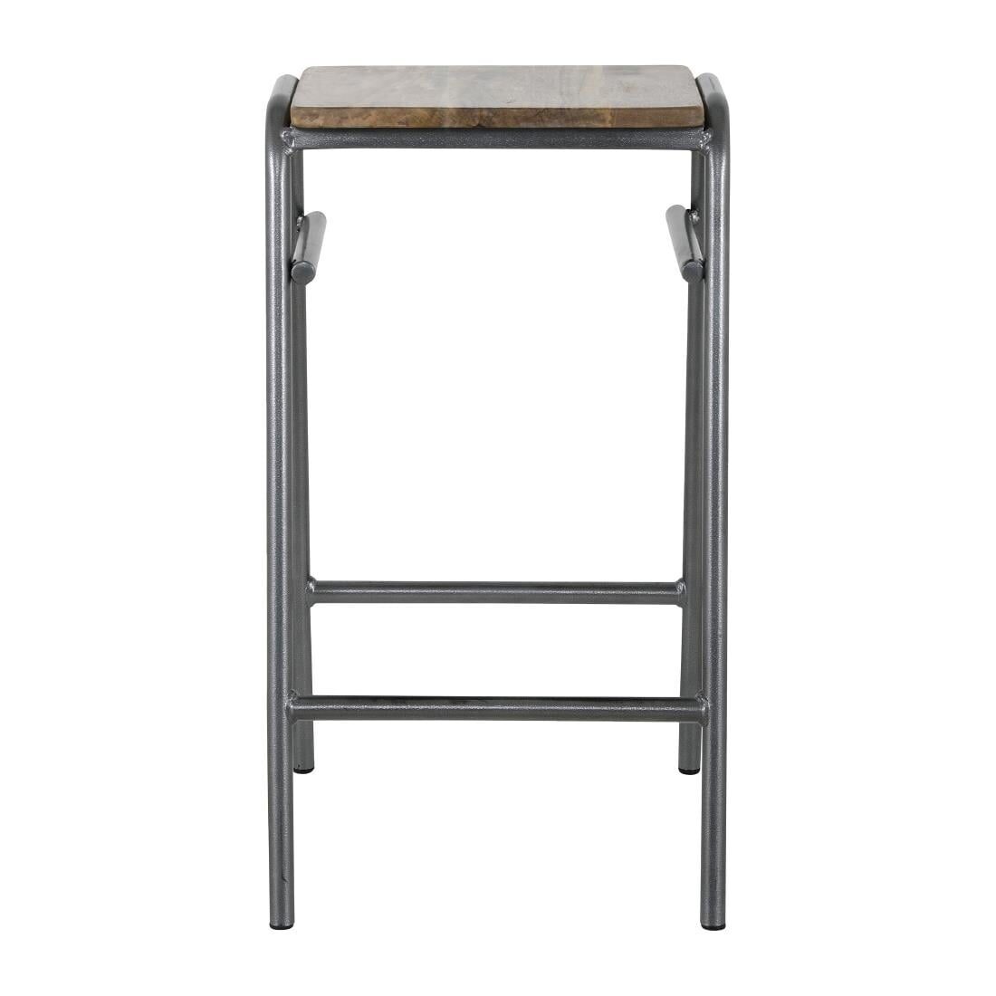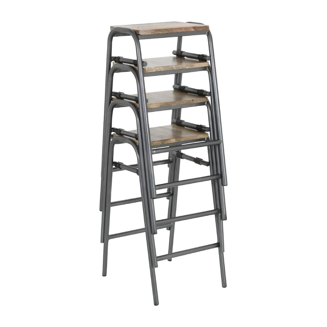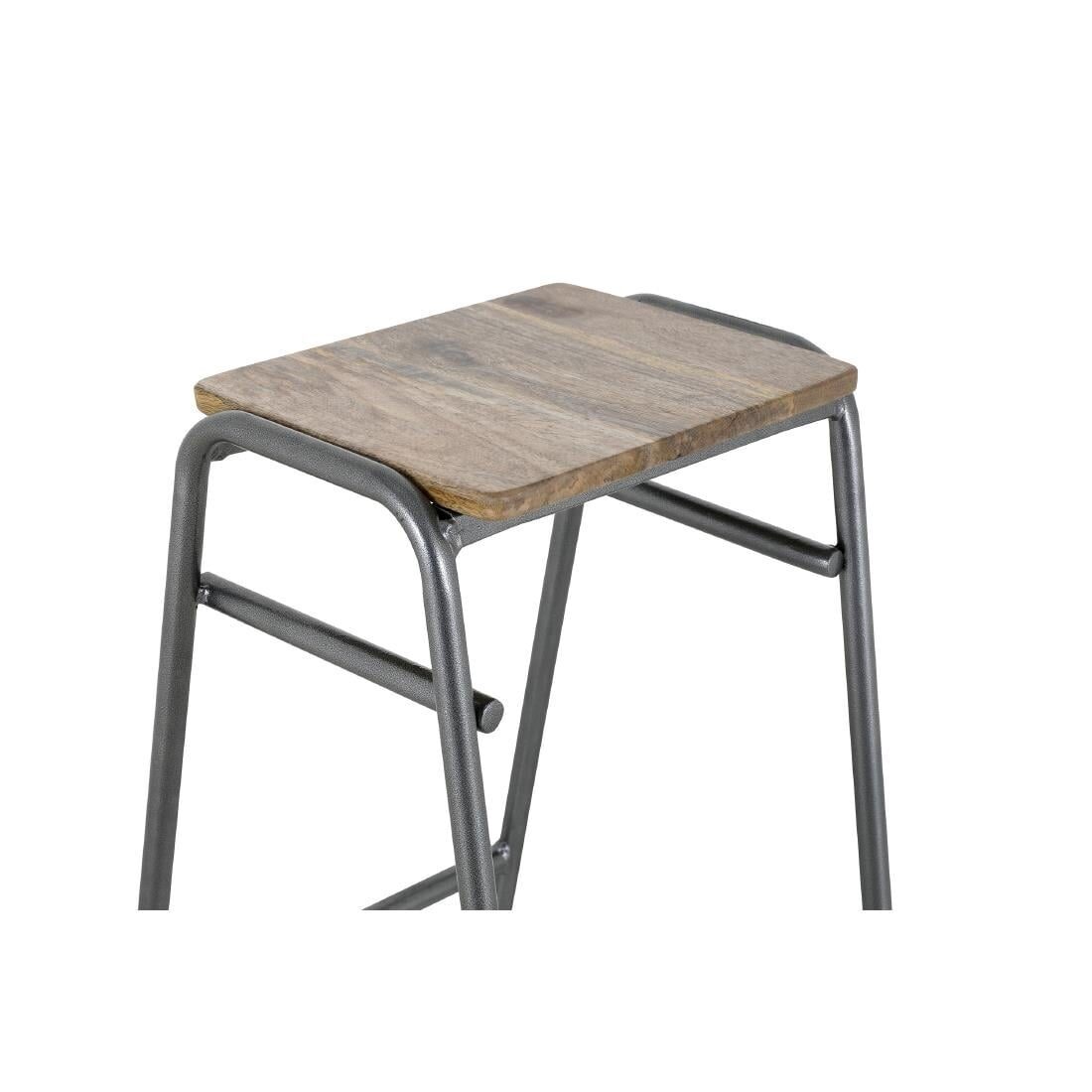 Eigentijdse gegalvaniseerd stalen krukken met een verweerde, casual look en houten zitting.