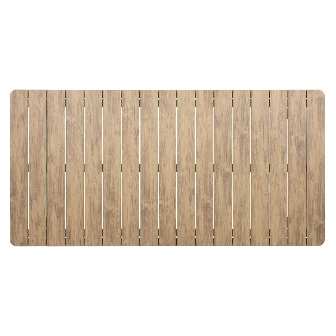 Tafelblad is gemaakt van hoogwaardig duurzaam polywood (plastic hout) materiaal, met een realistische houtnerf afwerking bovenop