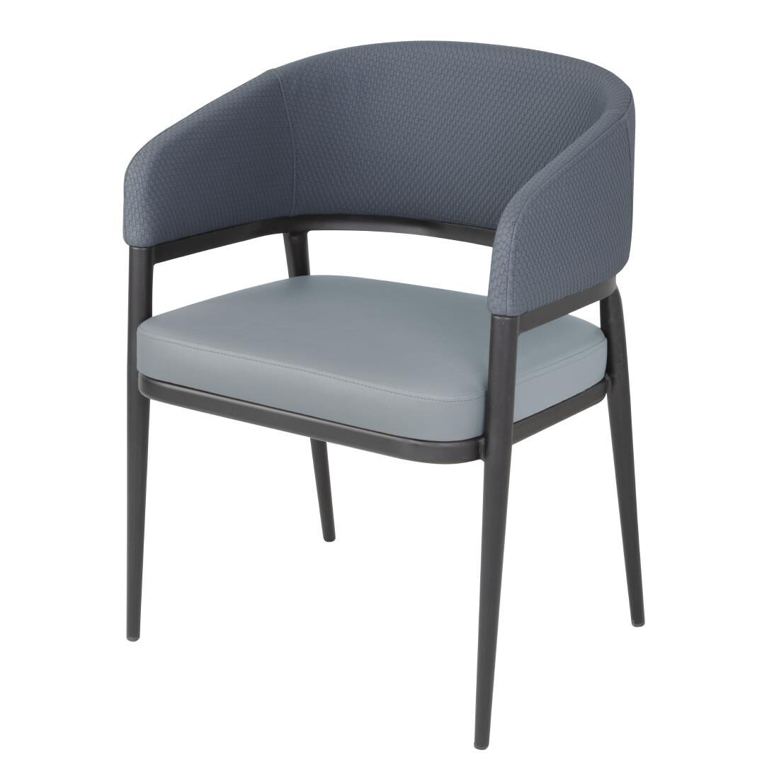 Bolero's Meridian binnen eetkamerstoelen bieden de perfecte mix van comfort en stijl. Met premium vulling in de kussens en bedekt met duurzaam, afwasbaar PVC-stof, zijn deze stoelen zowel comfortabel als praktisch. De steengrijs blauwe kleurmix geeft de p