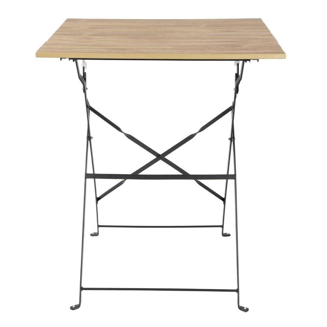Deze stoeptafel met houteffect uit de Perth-serie van Bolero combineert de natuurlijke uitstraling van hout met de sterkte van metaal. De tafel is ontworpen met een afwerking die lijkt op natuurlijk hout en heeft een natuurlijke en moderne uitstraling die uw zitgedeelte zeker zal opfleuren. Dankzij het lichtgewicht en opvouwbare ontwerp is de Bolero bistrotafel gemakkelijk te vervoeren en compact genoeg om opslagruimte te besparen. Dankzij deze praktische constructie kan uw personeel uw eethoek in een handomdraai in- en inpakken. Bovendien heeft de vierkante tafel, omdat hij is gemaakt van gepoedercoat staal, een uitstekende duurzaamheid, zodat hij geschikt is voor commercieel gebruik zonder dat hij zijn gloednieuwe look verliest.