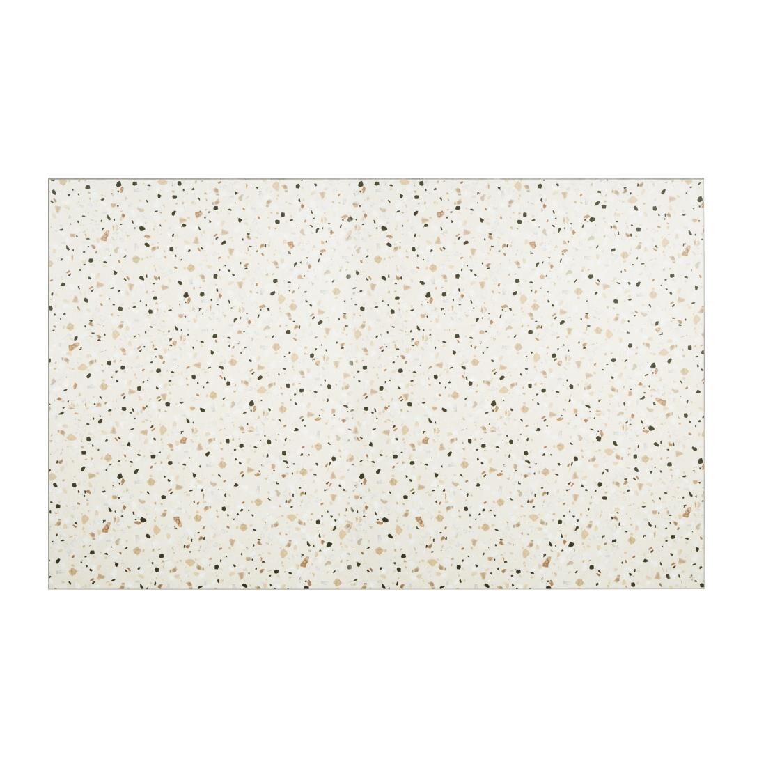 Dit rechthoekige tafelblad van Bolero heeft een afmeting van 1100 x 700 mm en heeft een levendig terrazzo-printontwerp, aangevuld met een hoogwaardige rand van aluminiumfolie met messingeffect. Het is voorgeboord en past op de Bolero-tafelonderstellen en is vlek- en krasbestendig voor langdurig gebruik. Voor uw gemak is het oppervlak van de tafel gemakkelijk schoon te vegen, waardoor u zowel voor als na het onderhoud tijd bespaart. Dit rechthoekige terrazzo tafelblad van Bolero is geschikt voor gebruik binnenshuis en is ook verkrijgbaar in ronde en vierkante maten.