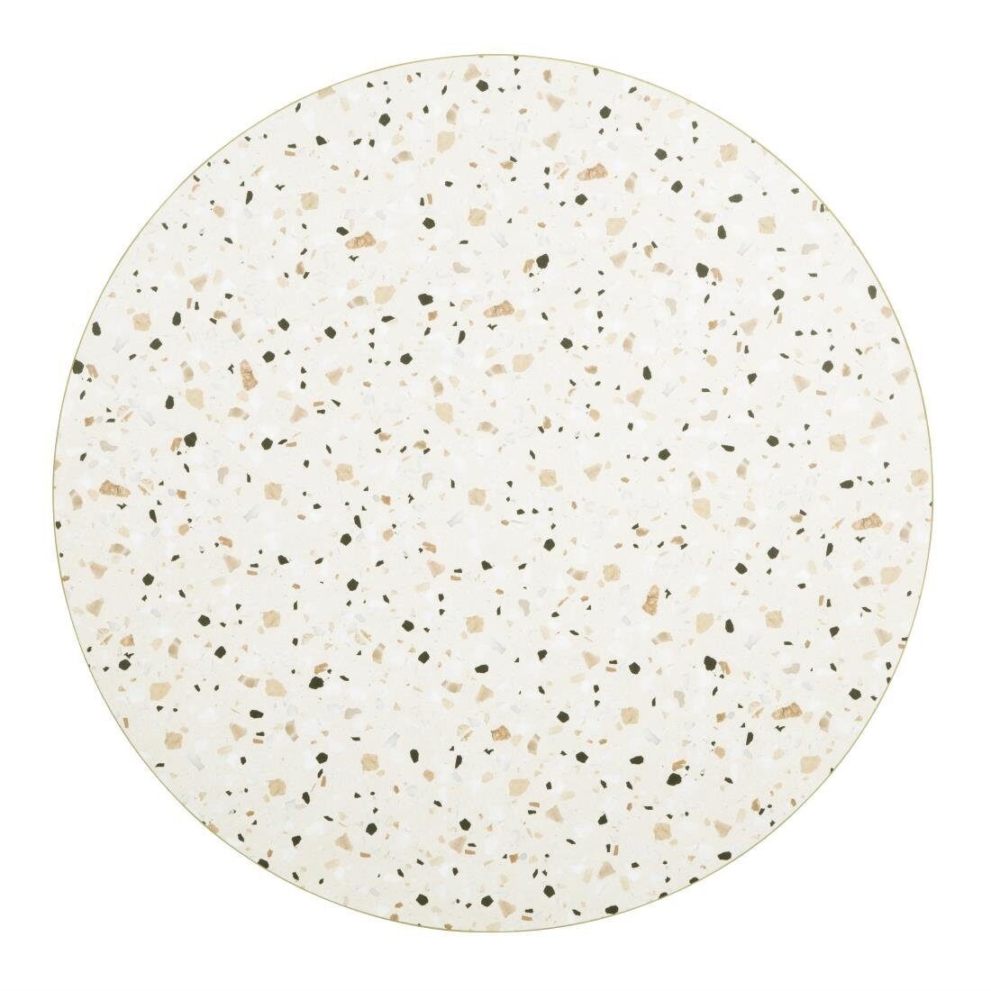 Dit ronde Bolero-tafelblad heeft een diameter van 600 mm en heeft een levendig terrazzo-printontwerp, aangevuld met een hoogwaardige rand van aluminiumfolie met messingeffect. Het is voorgeboord en past op de Bolero-tafelonderstellen en is vlek- en krasbestendig voor langdurig gebruik. Voor uw gemak is het oppervlak van de tafel gemakkelijk schoon te vegen, waardoor u zowel voor als na het onderhoud tijd bespaart. Dit ronde terrazzotafelblad van Bolero is geschikt voor gebruik binnenshuis en is ook verkrijgbaar in vierkante en rechthoekige maten.