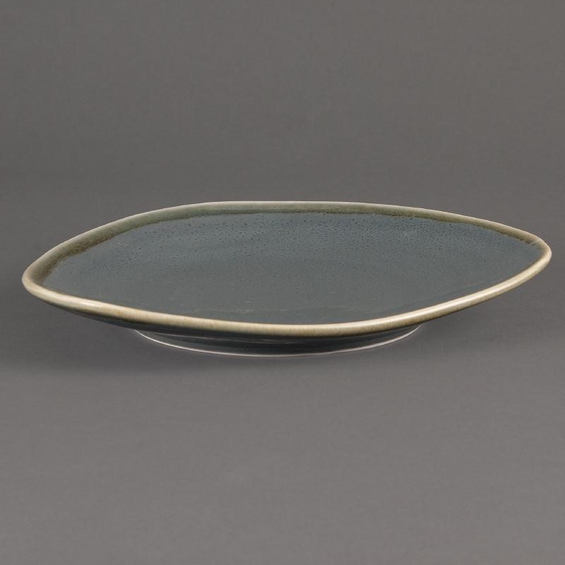 Deze driehoekige blauwe borden uit het Olympia Kiln assortiment hebben het ideale formaat voor voorgerechten en zijn geïnspireerd op de kleuren uit de natuur. Door een reactief glazuur aan te brengen, is elk bord uit dit assortiment uniek. Een mooi porselein om huisgemaakte gerechten te serveren.