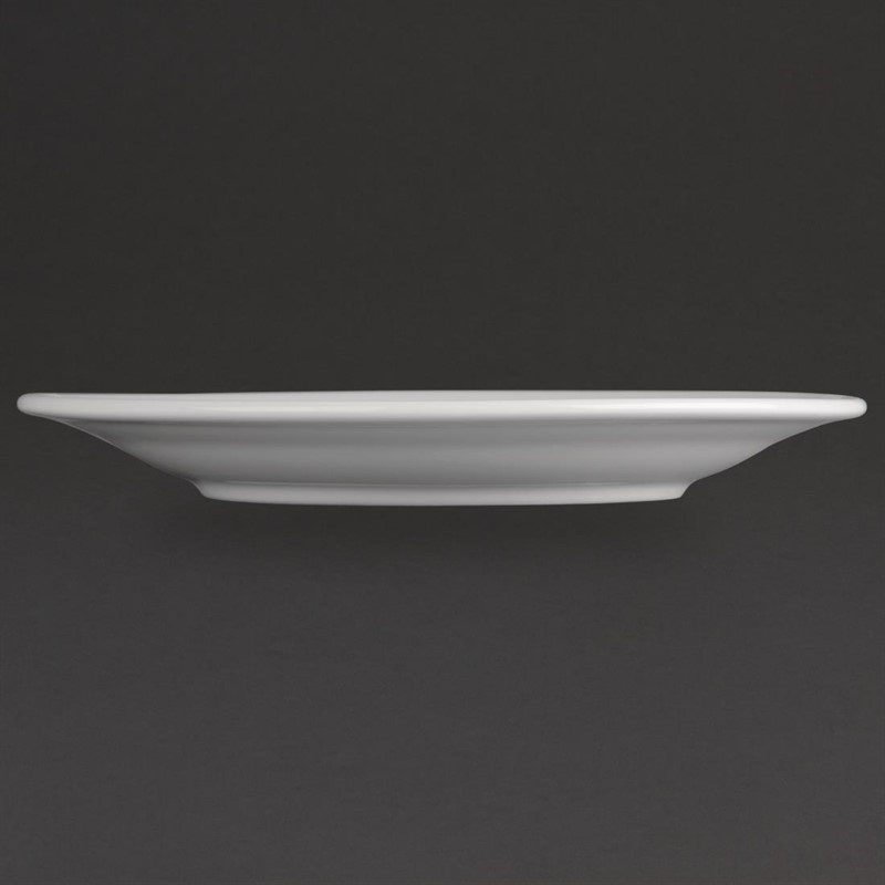 Deze borden met brede rand van Athena Hotelware zijn borden waar u op kunt vertrouwen in de bediening. Het extra verglaasde porselein maakt de borden sterk, stevig en praktisch - ideaal voor pubs, kantines en bistro's. Met gerolde randen, waardoor het bord stoten kan doorstaan zonder dat de rand beschadigd wordt, waardoor u geld bespaart op vervangingen en uw service er professioneel uit blijft zien. Ze zijn oven-, magnetron- en vaatwasserbestendig, zodat de borden geschikt zijn voor allerlei toepassingen in de keuken en eenvoudig kunnen worden schoongemaakt. De borden vallen onder de Nisbets chipgarantie.
