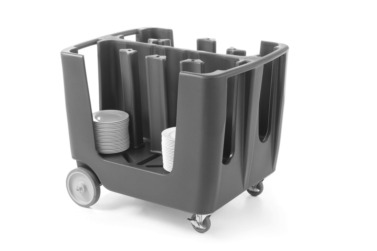 De kleur van deze bordenwagen is grijs