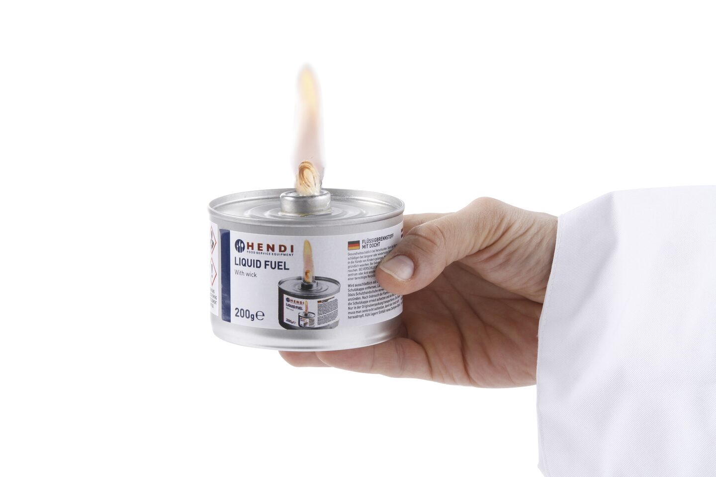 Geen brandpasta houder nodig, blikje wordt niet heet.