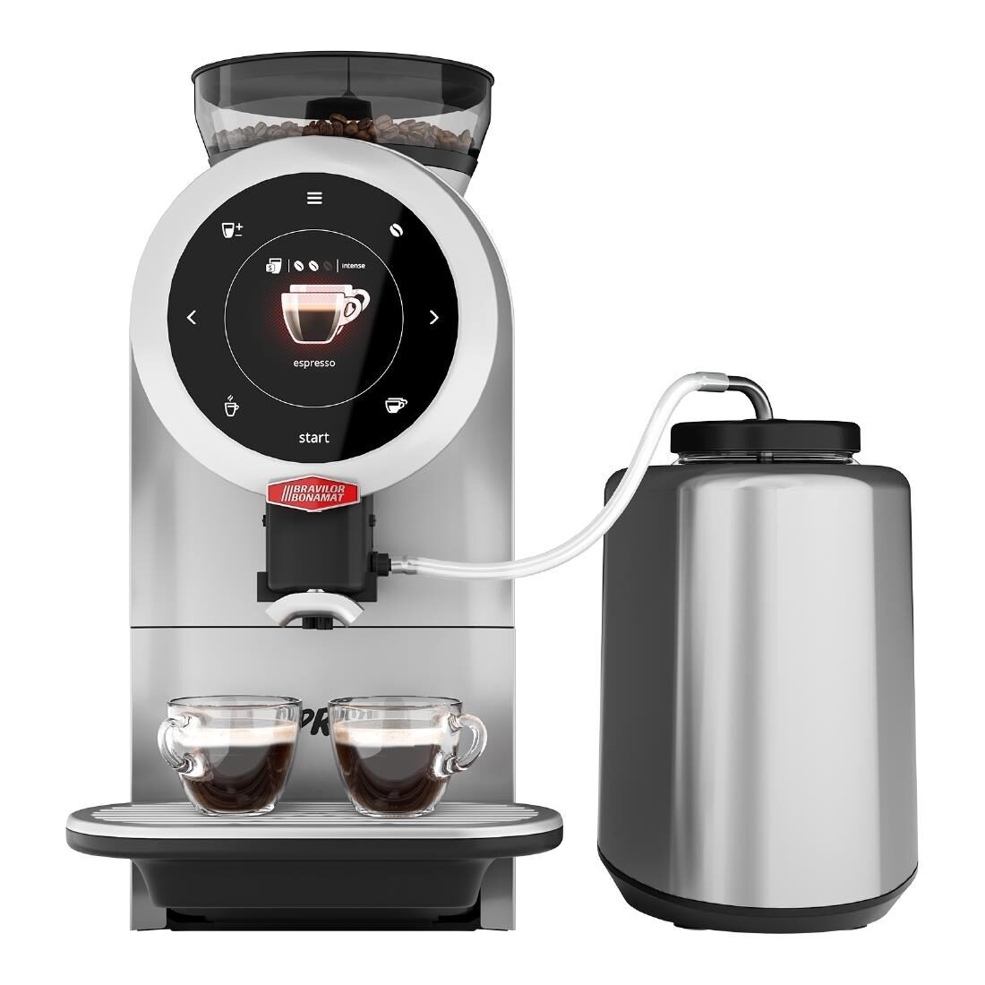 Om te genieten van een scala aan koffiespecialiteiten met vers opgeschuimde melk, kunt u overwegen de optionele Sprso-melkkoeler toe te voegen. Hoewel de Sprso compatibel is met verschillende melkkoelers, beveelt Bravilor Bonamat deze stand-alone thermo-elektrische melkkoeler aan vanwege zijn betrouwbaarheid en prestaties, en voldoet hij aan onze strenge kwaliteitsnormen. Deze koelbox is compact en handig voor gebruik op een tafel en koelt melk tot temperaturen tussen +1°C en +7°C (afhankelijk van de omgevingsomstandigheden). Inbegrepen in het pakket: 1 liter melkglas, 20 cm melkslang en wandmontageadapter.