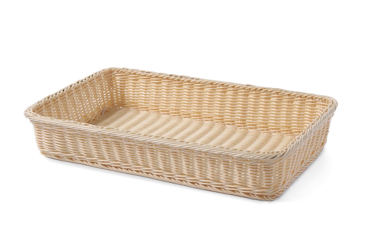 Het rechthoekige 1/1 GN-ontwerp maakt deze mand uiterst veelzijdig. Of u het nu gebruikt voor een uitgebreid ontbijtbuffet, een lunchpresentatie of als onderdeel van een cateringopstelling, de mand biedt een stabiele en esthetische basis. Het materiaal is voedselveilig en behoudt zijn vorm, zelfs bij intensief gebruik in een drukke horecaomgeving.