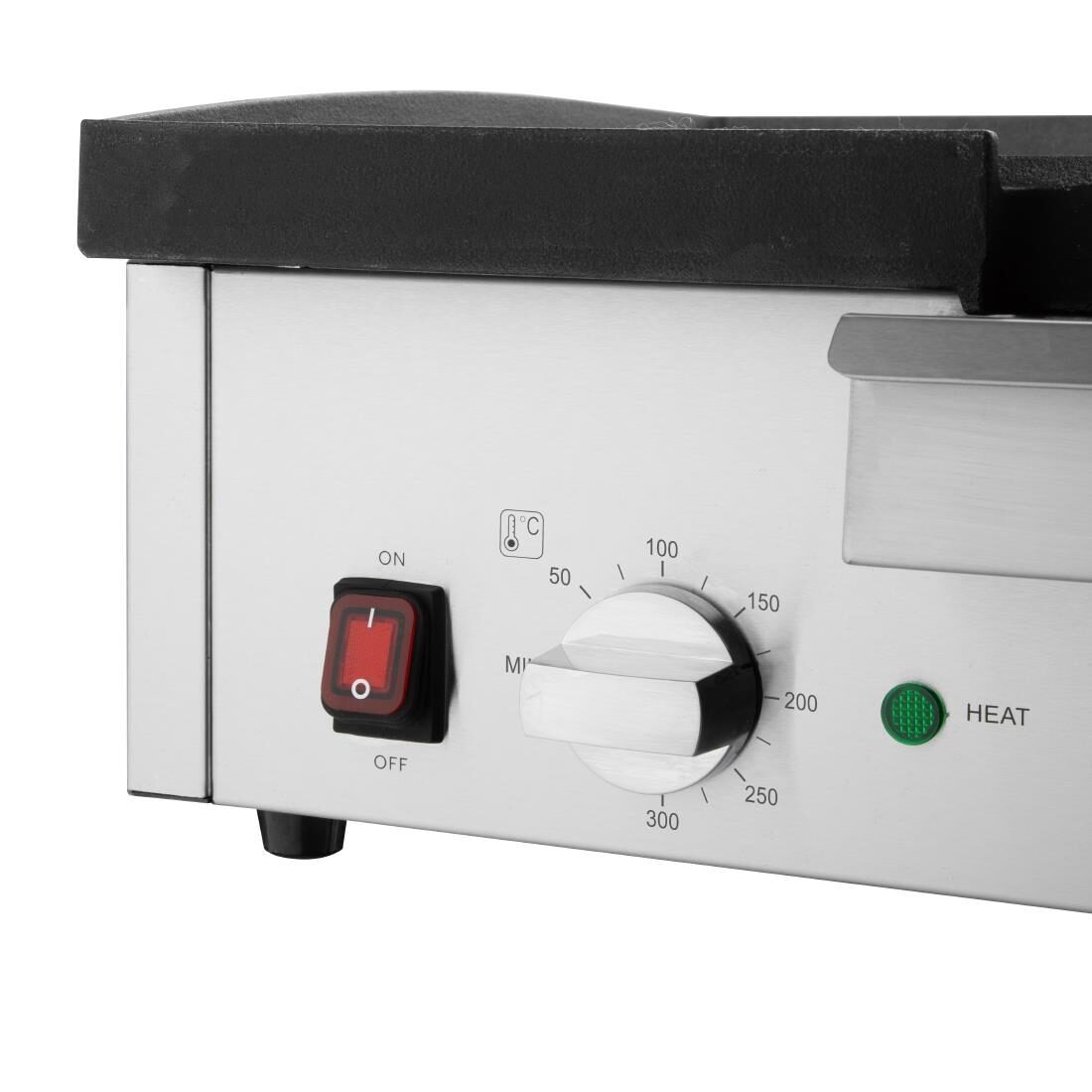 Elektrische bakplaten als tafelmodel met gladden gietijzeren platen die duurzaam zijn een makkelijk kunnen worden gereinigd. Met een uitneembare lekbak aan de voorkant en thermische beveiliging.