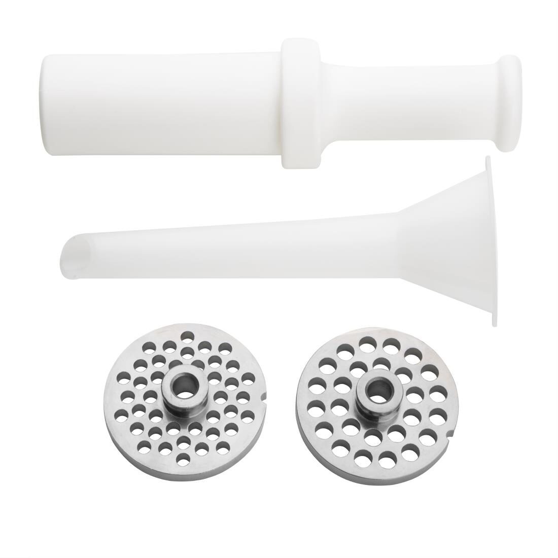 Hak, maal en verwerk tot 130kg vlees per uur met de Buffalo zware vleesmolen - een krachtige en betrouwbare oplossing voor drukke professionele keukens.Ontworpen om vleesmaling snel en eenvoudig te maken, beschikt de molen over sterke roestvrijstalen messen en standaard maat 12 platen, allemaal aangedreven door de krachtige 550W motor. De Buffalo molen heeft ook een handige omkeerfunctie, waarmee je verstoppingen of blokkades kunt verhelpen. Er is ook een handige worststopper bijgevoegd - wat de flexibiliteit van de machine verder vergroot.Als je klaar bent met malen, is het hele maalmechanisme gemakkelijk te demonteren voor hygiënische reiniging.