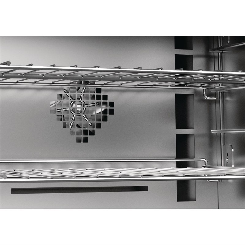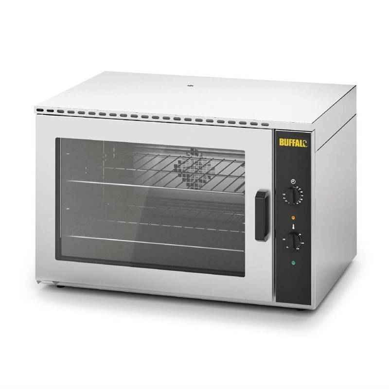 Deze krachtige en betrouwbare 100L heteluchtoven van Buffalo levert ongekende prestaties, of u nu brood, ovenschotels of andere gerechten wilt bereiden. Deze oven van Britse makelij maakt gebruik van een ventilator om de warmte gelijkmatig te verdelen en zo consistente bakprestaties te leveren. Door het ruime formaat plaatst u er eenvoudig GN 1/1 bakken in, terwijl de eenduidige bediening met slechts twee draaiknoppen ervoor zorgt dat het gebruik heel intuïtief is.