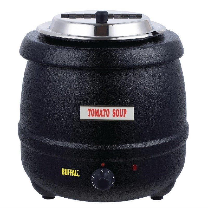 Deze grote soepketel van Buffalo is dé perfecte soepketel voor het serveren van grote hoeveelheden soep, chili con carne, glühwein en nog veel meer. Met gebruiksvriendelijke temperatuurknop en scharnierend deksel. Deze professionele soepketel is eenvoudig te vullen en te reinigen en is ook draagbaar en daardoor ideaal voor gebruik bij mobiele catering, maar ook nog eens een mooie en permanente aanvulling voor uw café of keuken.