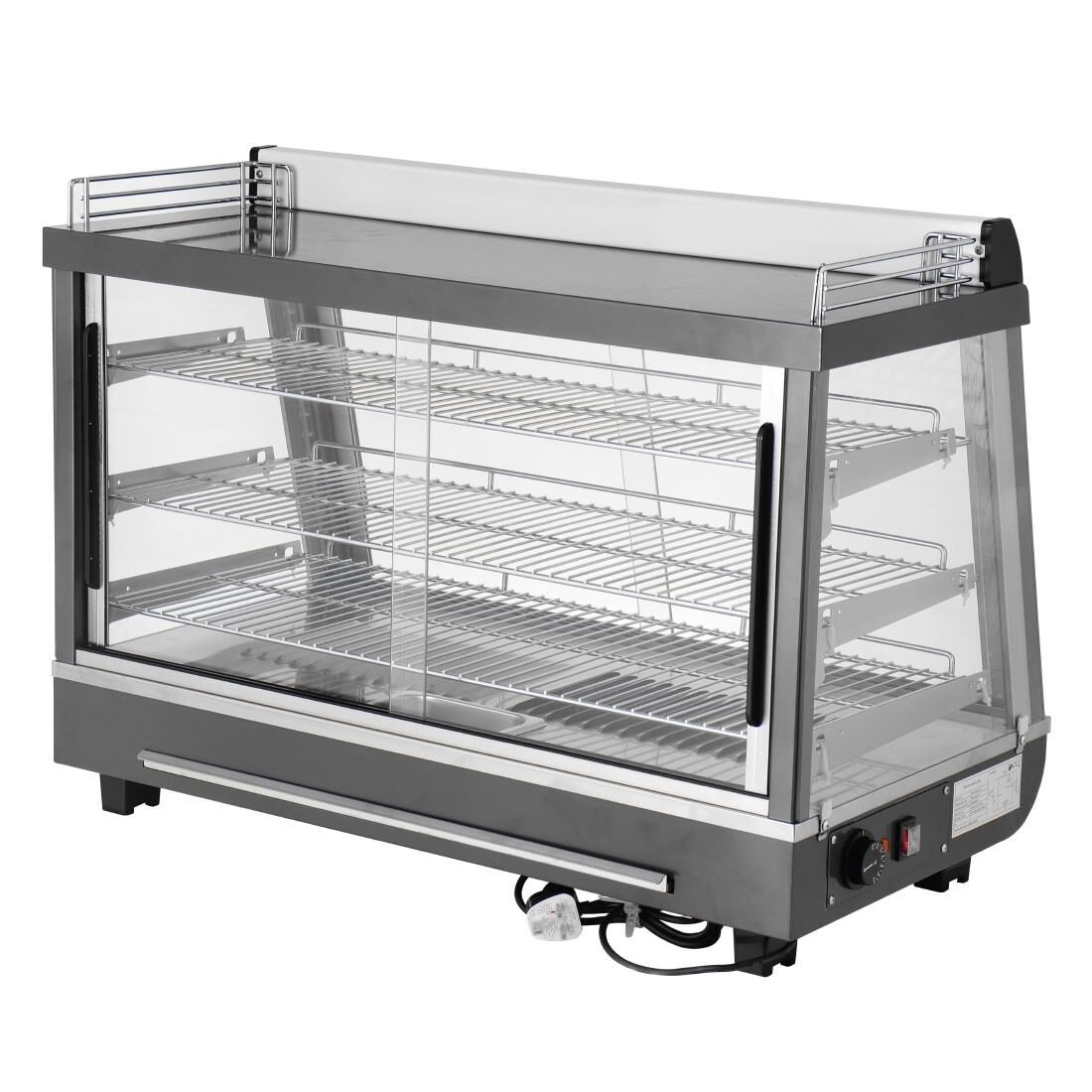 De Buffalo verwarmde deurmerchandiser aan de voor- en achterzijde is een geweldige manier om uw bestverkochte warme gerechten op aantrekkelijke wijze te presenteren terwijl u ze gedurende langere tijd op de perfecte serveertemperatuur houdt. Ontworpen voor betrouwbaarheid en prestaties, biedt de merchandiser tot 136 liter ruimte over drie verstelbare planken, allemaal aantrekkelijk weergegeven met stijlvolle interne verlichting.De schuifdeuren aan de voor- en achterzijde zijn een uitstekende manier om toegang te krijgen tot de inhoud. Of de merchandiser nu wordt gebruikt in een zelfbedienings- of assistentservicegebied, het is gemakkelijk om snel items van de planken te pakken. En voor de hygiëne is de hele unit eenvoudig te reinigen, dankzij de sterke metalen en glazen constructie, evenals afneembare deuren en planken.