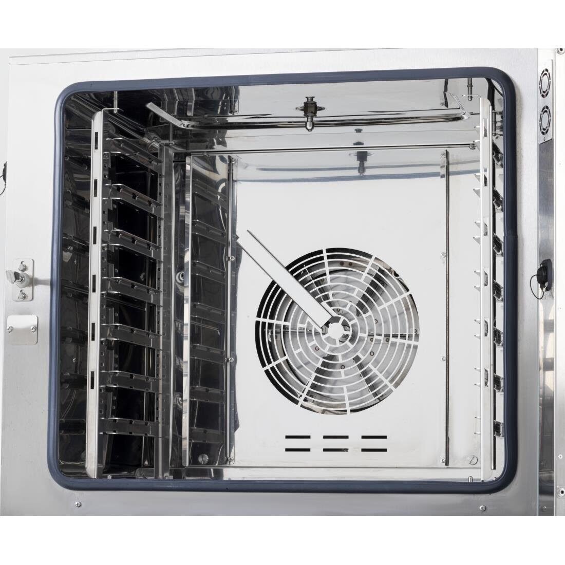 Voor meer informatie over dit product of om een live productdemonstratie te boeken, bel alstublieft (+44) 0117 345 9539.Betrouwbare, gebruiksvriendelijke combiovens zijn vaak een van de belangrijkste kooktoestellen in de professionele keuken. Ze moeten alle functionaliteit hebben die je nodig hebt, terwijl ze gemakkelijk te reinigen en te gebruiken zijn en idealiter tegen een scherpe prijs.Dat is precies wat de Buffalo touchscreen combi oven is - een geweldig veelzijdige, fantastische alles-in-één kookoplossing met de flexibiliteit om je de kookresultaten te geven die je zoekt.Met zijn royale capaciteit van 7x 1/1 gastronorm trays biedt de Buffalo combinatieoven een indrukwekkende hoeveelheid ruimte voor zijn formaat. Gemakkelijk verstelbare planken en gastronorm-compatibiliteit zorgen ervoor dat je snel trays kunt verplaatsen tussen stations om tijd te besparen.De combi oven maakt dagelijkse bediening ook moeiteloos. Het front-gemonteerde 7" full-screen touchscreen paneel geeft je de mogelijkheid om multi-stage kookprogramma's in te stellen en uit te voeren, zodat verschillende gerechten allemaal tegelijkertijd klaar zijn. Tot 99 programma's met elk 6 fasen kunnen worden ingesteld, of kies uit een van de 40 voorgeprogrammeerde klassieke opties zoals spek, croissants, rosbief of chocoladetaartjes.Dat is niet alles - de oven bevat geavanceerde ClimaControl-technologie, een zeer nauwkeurig systeem waarmee je precies kunt instellen hoeveel warmte en stoom er voor elk programma wordt gebruikt. Je kunt ook koken met een keuze uit tijd, kernsonde of "Delta T" functies - deze indrukwekkende flexibiliteit is klaar voor jouw creativiteit.Als je klaar bent, is reinigen ook eenvoudig. Stel simpelweg de automatische éénknopswasmodus in en de Buffalo combi oven blijft stralend schoon, klaar voor hergebruik.Let op: deze optie omvat een sterke standaard, die extra opslag toevoegt terwijl de combi oven op een comfortabele werkhoogte wordt gebracht. Met deze optie krij