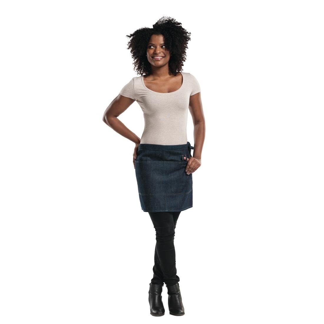 Denim is populairder dan ooit. Onze Black Denim-lijn is gemaakt van stevig materiaal met die onmiskenbare denim-look. Dit materiaal kan, in tegenstelling tot echt denim, industrieel gereinigd worden. Een stoere uitstraling, die niet ten koste gaat van kwaliteit of gemak.Deze korte, vlotte sloof heeft 3 handige, ruime zakken.