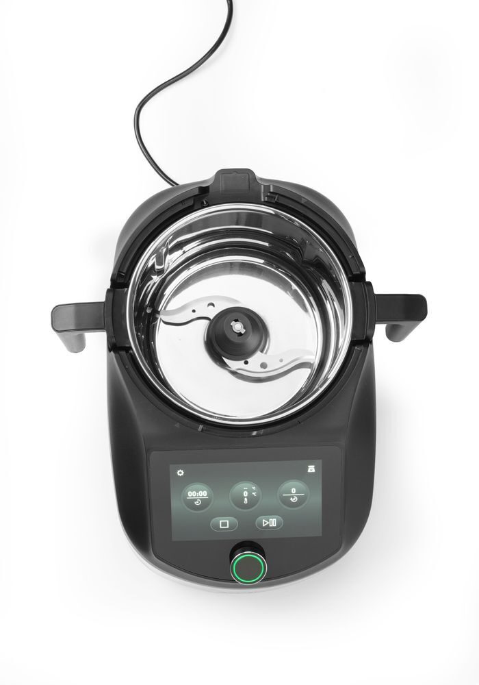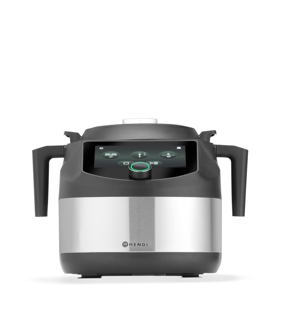 Veiligheidssloten zorgen ervoor dat de kom op zijn plaats blijft.De HENDICHEF Pro multifunctionele voedselverwerker is ontworpen voor professionele keukens en vereenvoudigt de voorbereiding met geavanceerde functionaliteit en robuuste prestaties. Met een ingebouwde kom met hoge capaciteit, naadloos geïntegreerd in de structuur van het apparaat, biedt hij stabiliteit, ruimte-efficiëntie en gebruiksgemak. Door blenderen, mengen en koken te combineren in één krachtig apparaat, beschikt hij over 10 instelbare snelheidsstanden, nauwkeurige temperatuurregeling per 1°C tot 160°C en een responsief 7-inch smart-touchscreen. De HENDIChef PRO is geschikt voor veeleisende culinaire omgevingen en verhoogt de productiviteit, consistentie en controle bij het bereiden van zowel warme als koude gerechten.