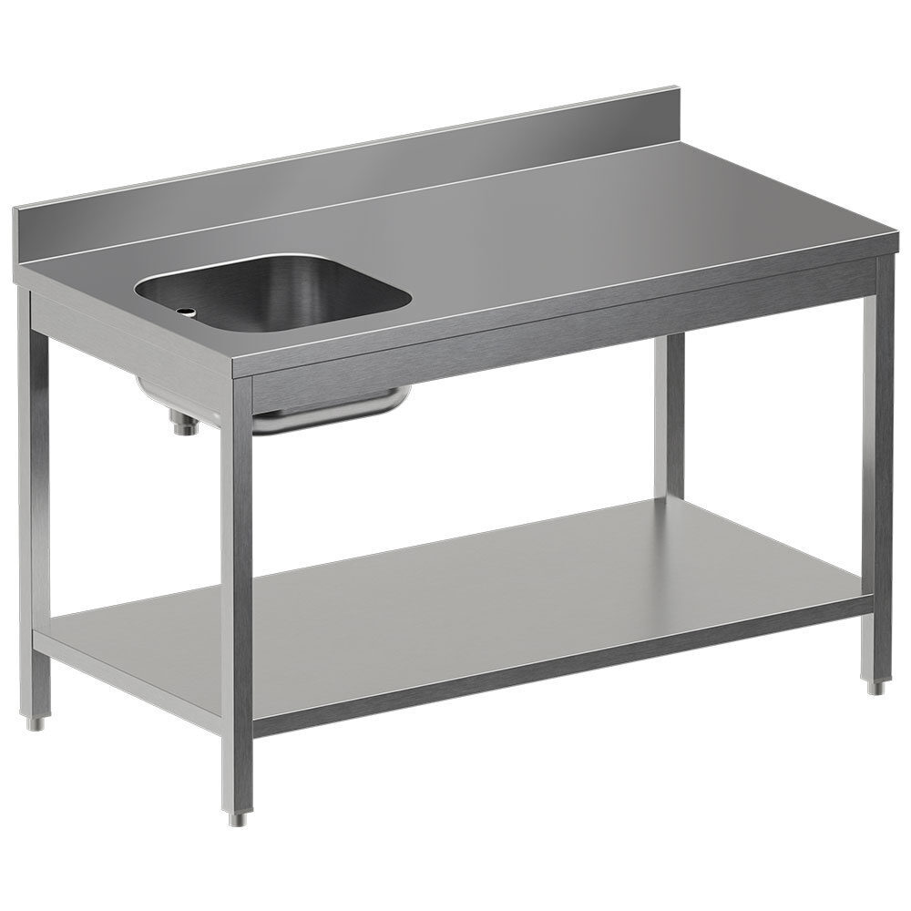 Chef-tafel met onderblad, spoelbak links + achteropstand | Diamond | TV1471SD-ST7