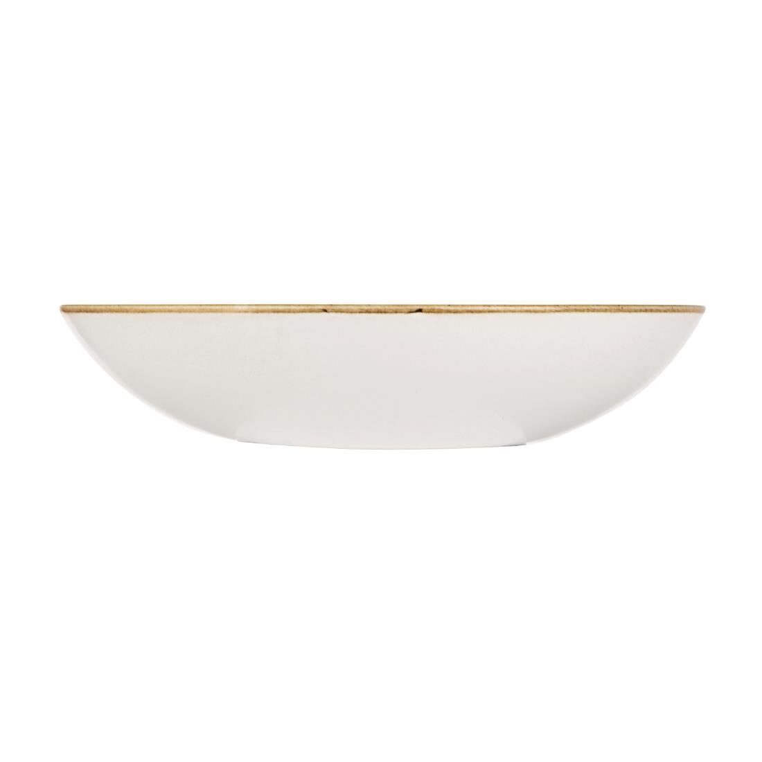 Zacht glooiende wanden creëren een coupe-kom die perfect is voor het presenteren van kleine voorgerechten of desserts die een beetje dressing gebruiken, zoals bijgerechten met olijfolie en een balsamico azijndressing.