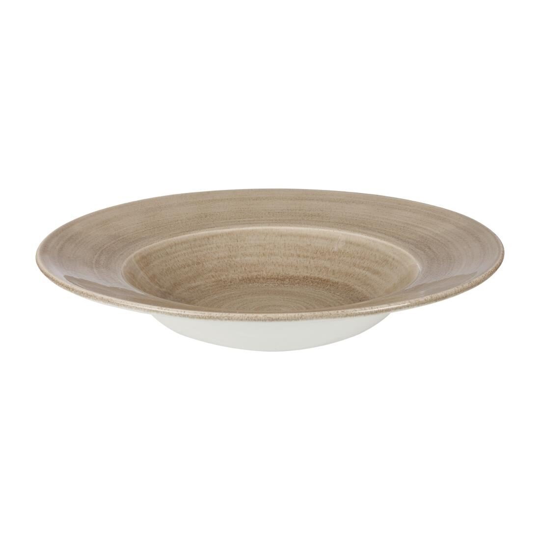 Met een verlengde vlakke rand zijn deze taupekleurige kommen uit de Churchill Stonecast serie perfect voor het presenteren van soepen, bisques en pasta met een combinatie van elegantie en rustieke charme. Het aantrekkelijke interieur in zandsteentint vertoont gevlamde kleuren, die mooi contrasteren met de glanzend witte buitenkant en deze interessante kommen een ingetogen alternatief maken voor gewoon wit serviesgoed. Gemaakt volgens de gebruikelijke strenge normen van Churchill, bieden deze kommen de perfecte combinatie van kwaliteit en uitstraling.
