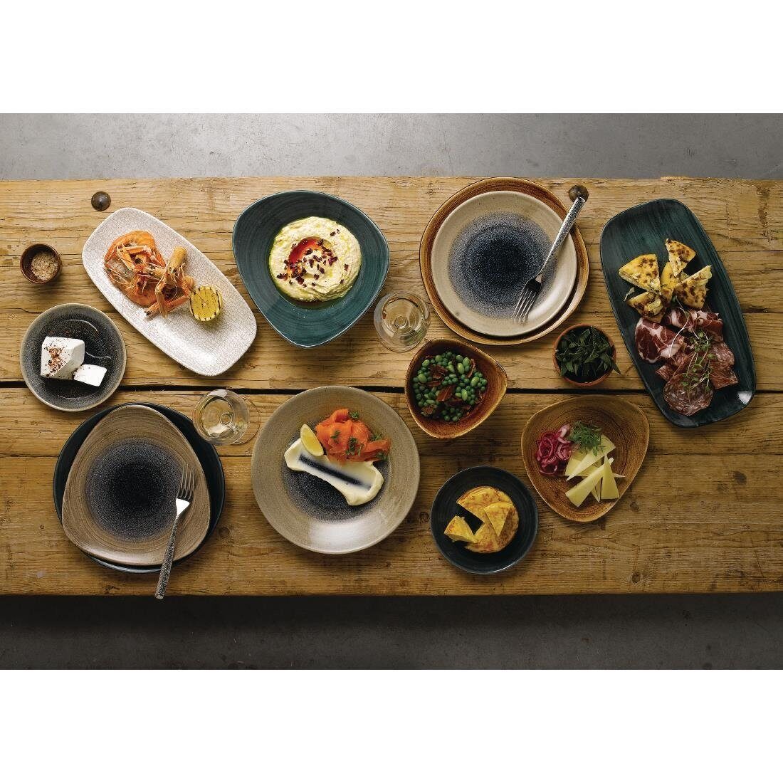 Geïnspireerd door de natuurlijke schoonheid van verouderend hout, is het Patina Coupe Bord de perfecte achtergrond voor verse, natuurlijke gerechten met traditionele wortels. De onregelmatige vorm geeft het een ambachtelijk aardewerk gevoel.