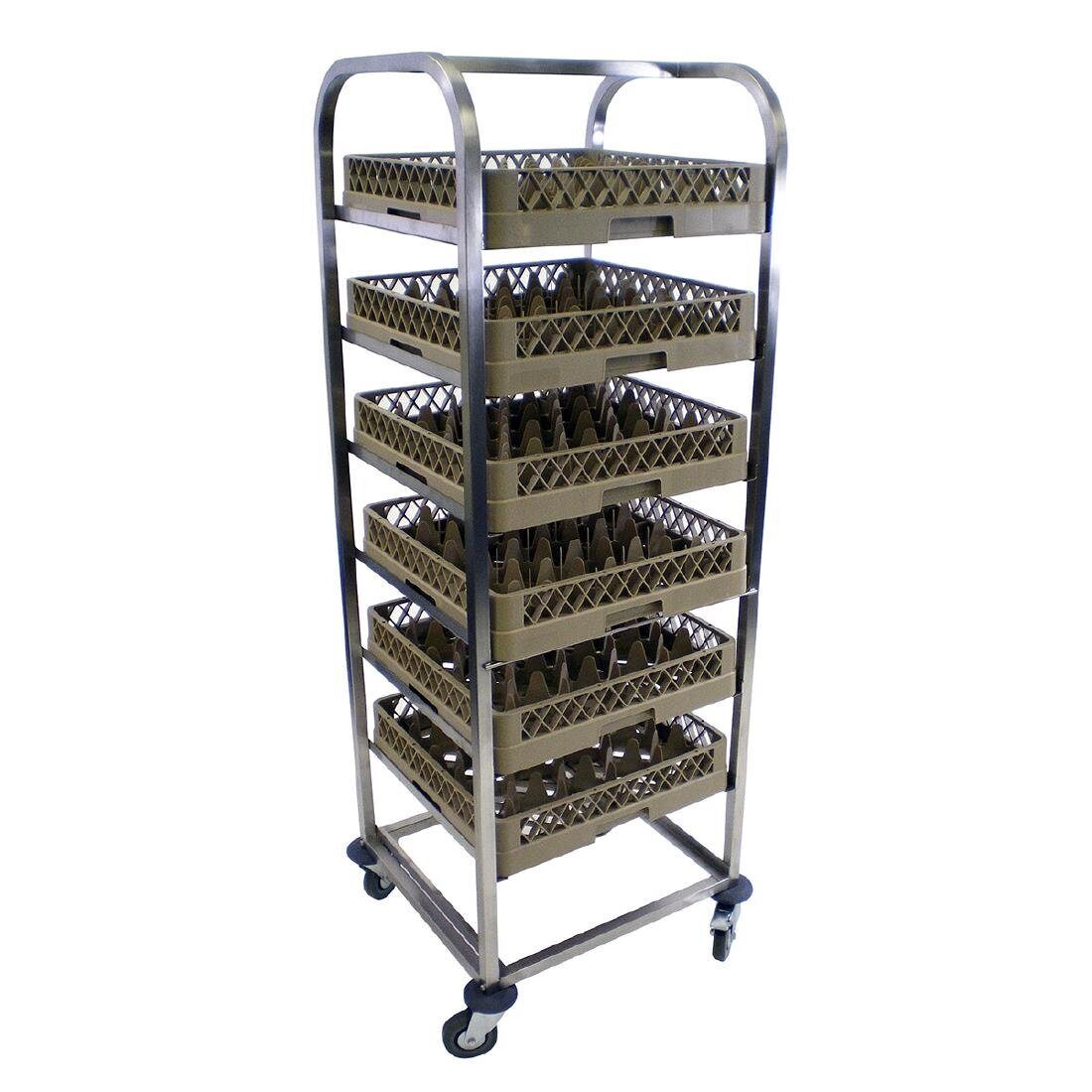 RVS trolley met 4 stevige wieltjes, waarvan 2 geremd.