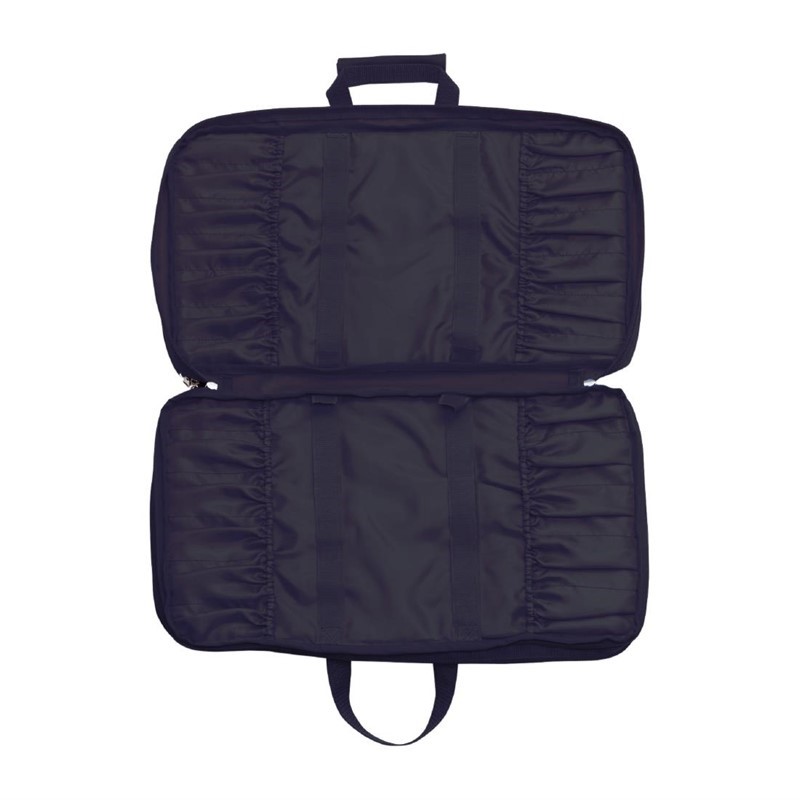 Dubbelzijdige tas van Dick met twee compartimenten voor 34 messen en aanverwante artikelen. Apart vak voor boeken en pennen. De tas zorgt ervoor dat uw messen in perfecte conditie blijven en klaar zijn voor gebruik. Let op: inhoud niet inbegrepen.