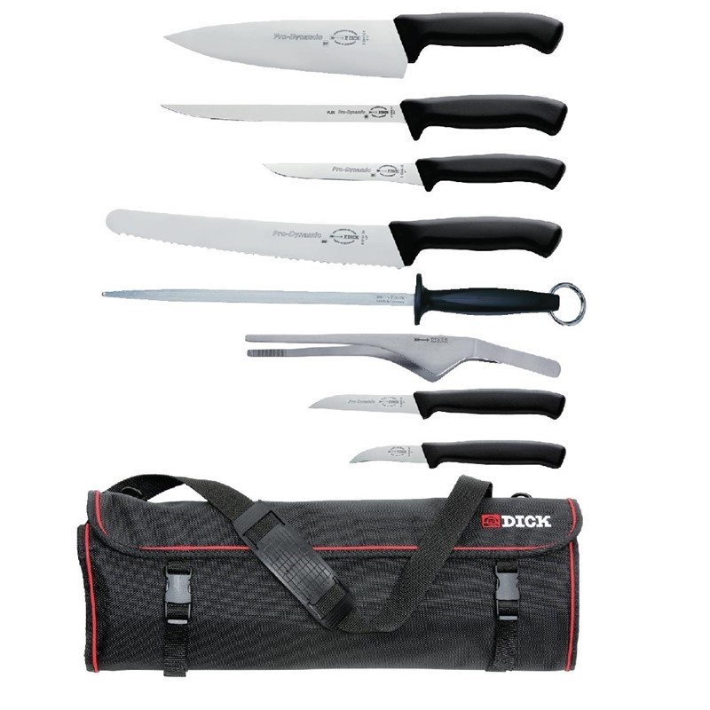Ideale messen starterset. Bevat alle belangrijke messen en accessoires voor in de moderne keuken. De set bestaat uit 6 messen, een graten pincet en een aanzetstaal, gepresenteerd in een schoon te vegen foedraal. Ideaal voor professionele koks, hobbykoks en horeca-studenten. Elk item heeft een zacht, drukabsorberend heft en kan gepersonaliseerd worden met een mooie gravure.