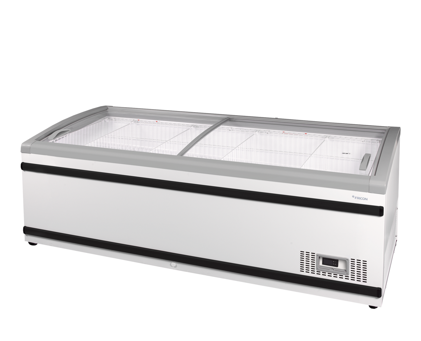 Diepvrieseiland met glazen schuifdeksels.