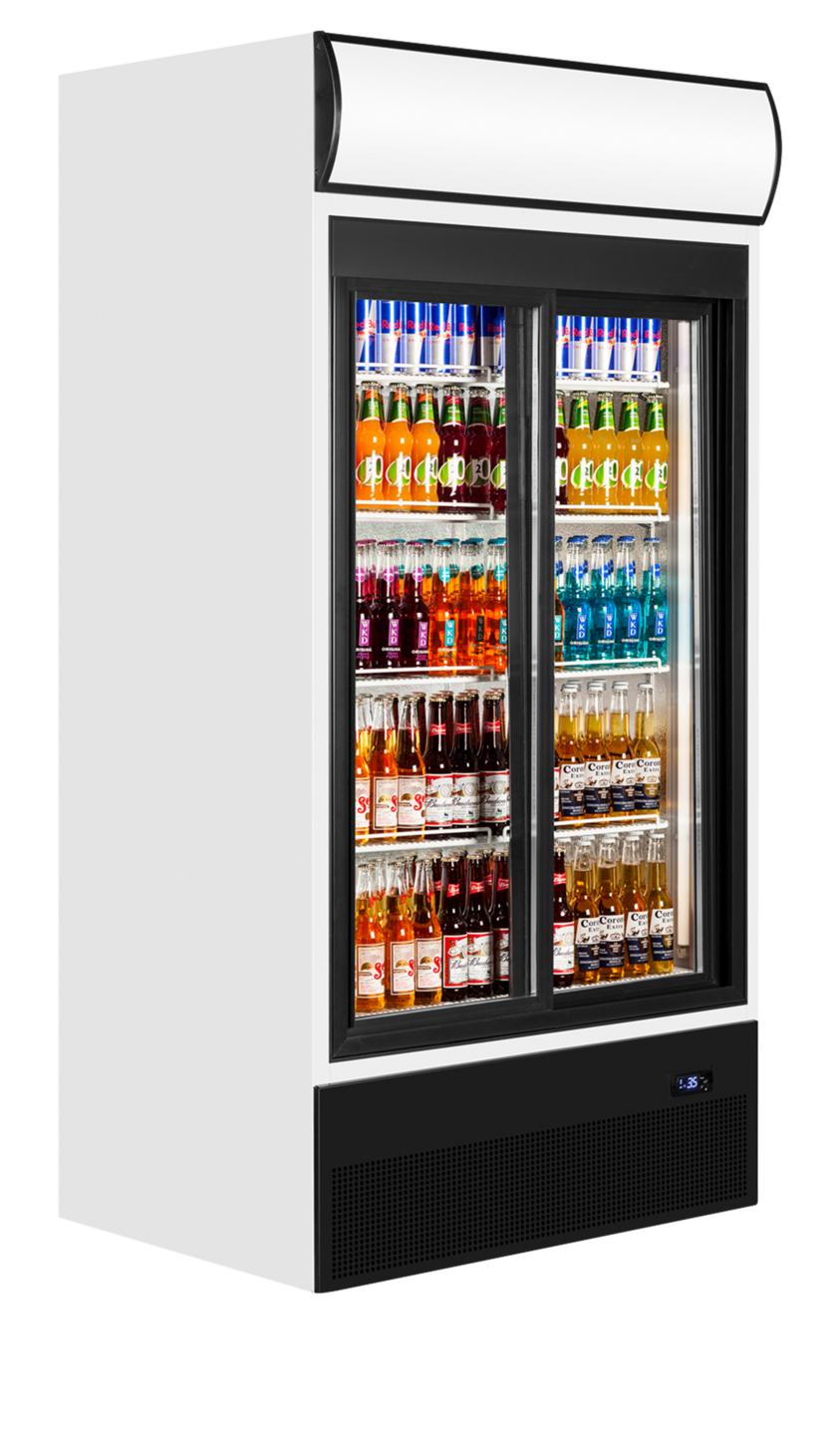 De FSC-serie displaykoelers met 2 of 3 deuren met een verlichte kap biedt een uitstekende ontwerpkwaliteit tegen een concurrerende prijs. Kies tussen kasten met witte of zwarte buitenzijde met zwarte glazen deuren met aluminium frame – scharnierend of schuivend. De planken zijn verstelbaar, waardoor de FSC-serie een flexibele oplossing is. Dit zorgt voor een geweldige productpresentatie in combinatie met een krachtig geventileerd koelsysteem dat wordt geregeld door een elektronische thermostaat. Veel modellen zijn ook verkrijgbaar zonder kap (FS-serie).