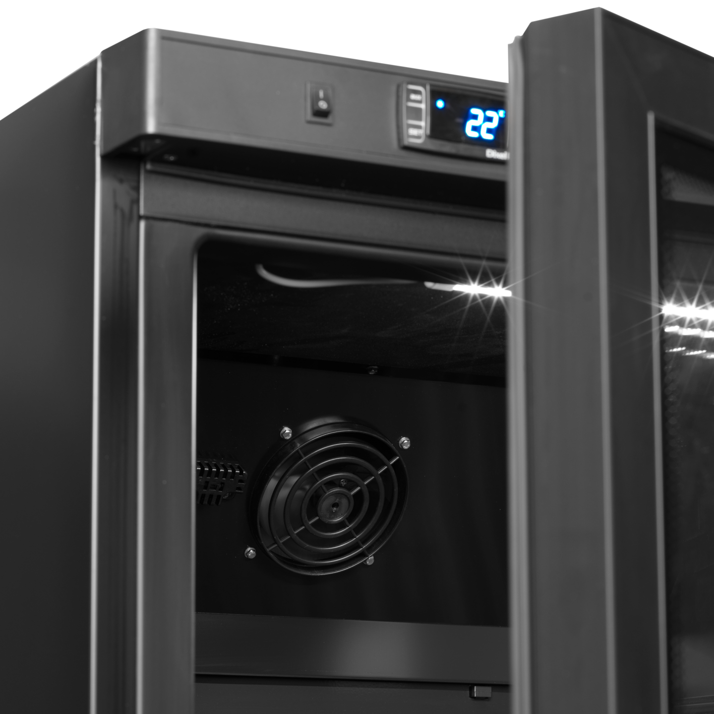 De UR-BG-serie koelers is de zwarte versie van onze UR-kasten met glazen deur. Deze displaykoelers bieden een goede zichtbaarheid van het product door de omkeerbare glazen deur. De koeler heeft verstelbare leggers, zodat u de kast eenvoudig kunt aanpassen aan uw behoeften. Ventilatorgestuurde koeling zorgt voor een stabiele temperatuur in de hele kast, die eenvoudig te regelen is met een elektronische thermostaat.