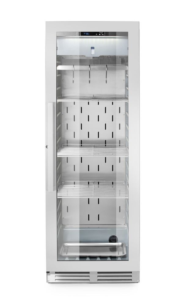 alle bovenstaande elementen zijn gemaakt van AISI 304 roestvast staal.De HENDI Dry aging kast creëert een gecontroleerde omgeving waarin vlees kan drogen, wat resulteert in uitzonderlijk mals en smakelijk vlees. De kast is ontworpen om het microklimaat, dat is vereist voor traditionele natuurlijke rijping, perfect na te bootsen. Tegelijkertijd zorgt de geavanceerde technologie voor een constante controle over het proces door constante ventilatie, instelbare luchtvochtigheid en sterilisatie.
