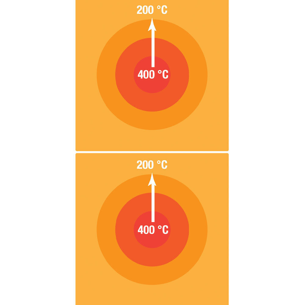- Plaat (15 mm) in "thermo-diffuserend” staal, verwarmd door, aan de onderkant geplaatste, weerstanden.