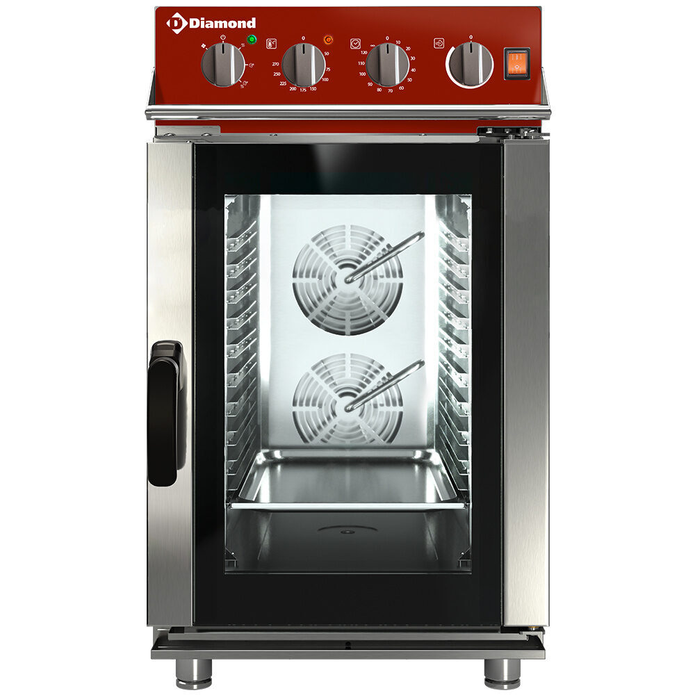 - Mechanisch bedieningspaneel: stoomregelaar 0–99 %, thermostaat 50 °C tot 270 °C, timer 1–120 min.