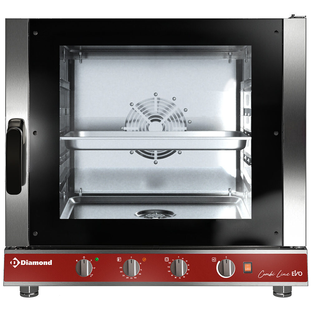 - Mechanisch bedieningspaneel: stoomregelaar van 0 tot 99%, thermostaat van 50°C tot 270°C, timer van 1 tot 120 min.