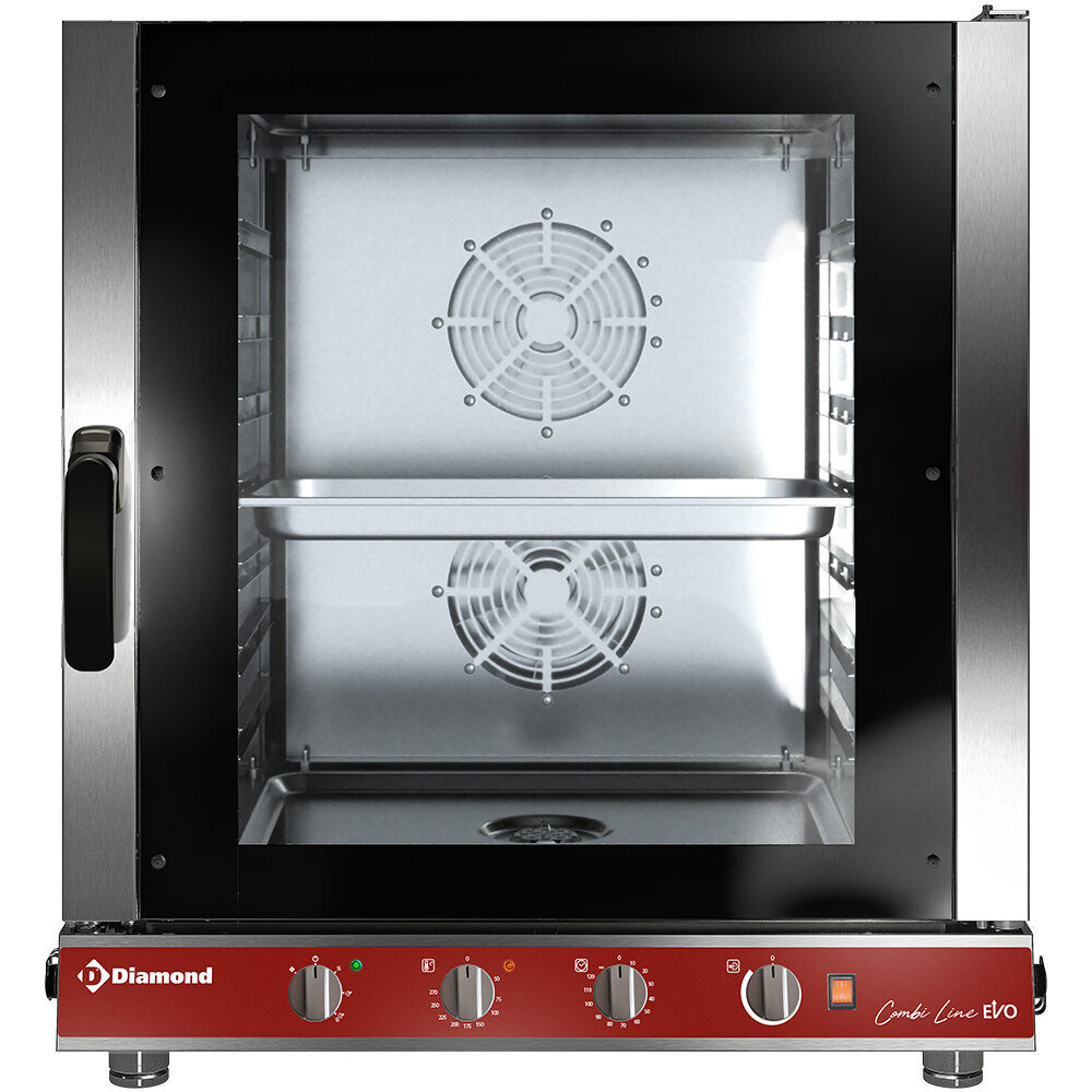 - Mechanisch bedieningspaneel: stoomregelaar van 0 tot 99%, thermostaat van 50°C tot 270°C, timer van 1 tot 120 min.