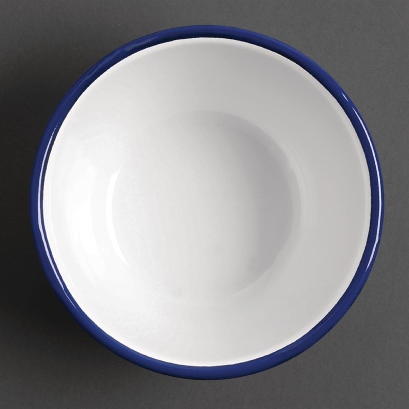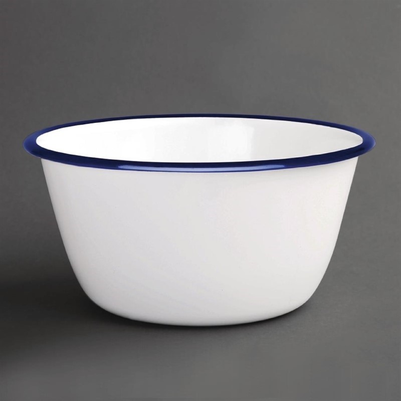 Deze collectie wit en blauw emaille servies is een ware blikvanger voor op tafel. Deze schaaltjes zijn gemaakt van hoogwaardige kwaliteit RVS waarop een zeer duurzame laag gesmolten glas is aangebracht, waardoor een glad oppervlak verkregen wordt. Hoe meer u de schaaltjes gebruikt, hoe meer karakter ze krijgen. Het emaille maakt de schaaltjes bestand tegen hitte en chemische stoffen zodat ze geschikt zijn voor in de vaatwasmachine en de oven.