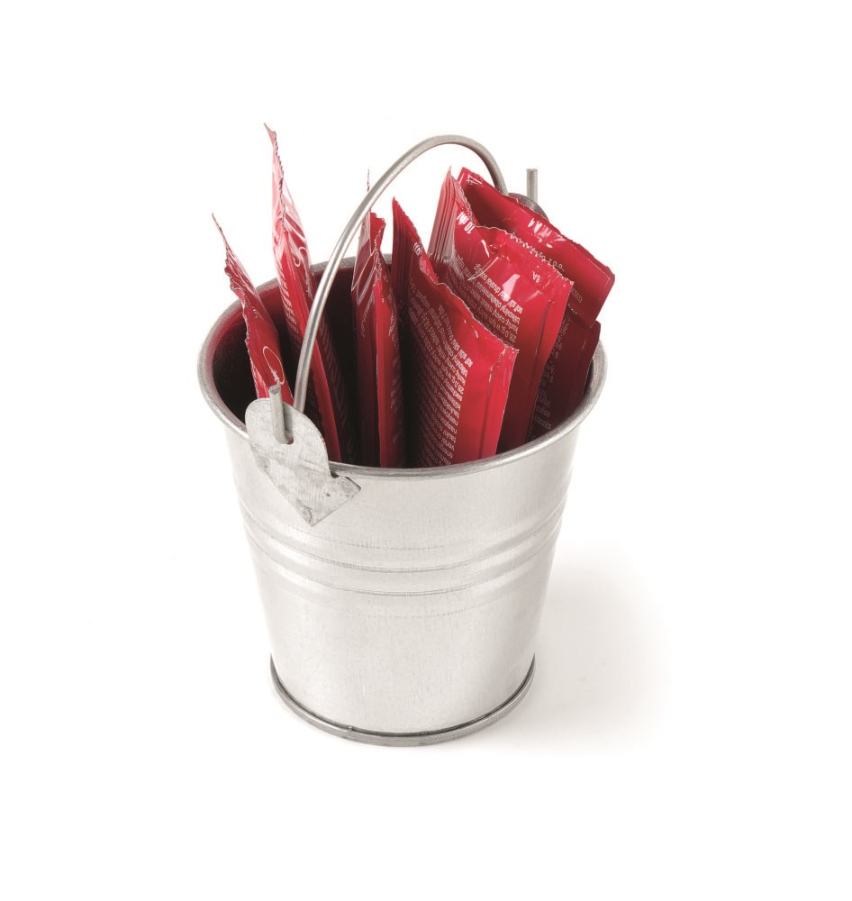 Gemaakt van gegalvaniseerd plaatstaal. Dit cre«ert een rustieke uitstraling. Gegalvaniseerd staal is niet bedoeld voor contact met levensmiddelen, gebruik onze vetvrije papieren vellen wanneer u voedsel wenst te serveren in de emmers. Met handvat. Nieuw. Niet geschikt voor vaatwasmachines. Voldoet niet aan de Food Contact eisen - getest.
