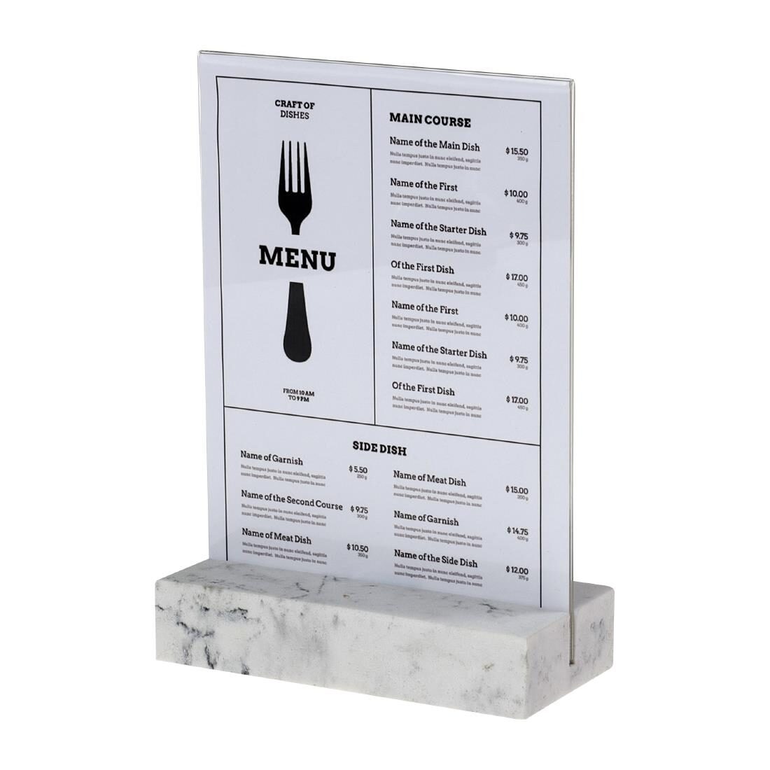 Verhoog uw presentatie met onze premium A5 portret bordenhouder, ontworpen voor een verfijnde en kristalheldere presentatie van menu's, advertenties en andere belangrijke informatie. Gemaakt van hoogwaardig, kristalhelder acryl, biedt deze bordenhouder een onberispelijke en professionele uitstraling die elke omgeving verfraait. De zware witte polystone basis zorgt voor stabiliteit en voegt een vleugje elegantie toe aan uw display. Of het nu gaat om menu's in chique restaurants, promotiemateriaal in winkelomgevingen of informatieve displays in bedrijfsomgevingen, onze A5 portret bordenhouder met luxe zware witte polystone basis is de perfecte keuze voor een verfijnde en effectieve presentatie.