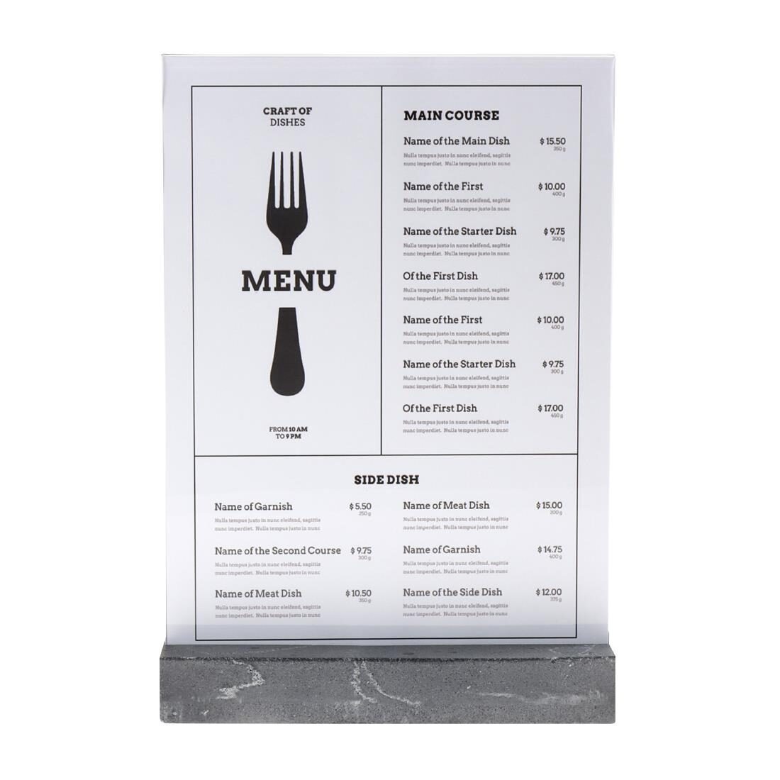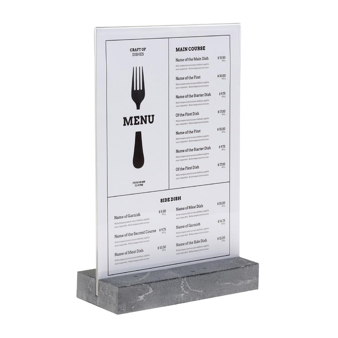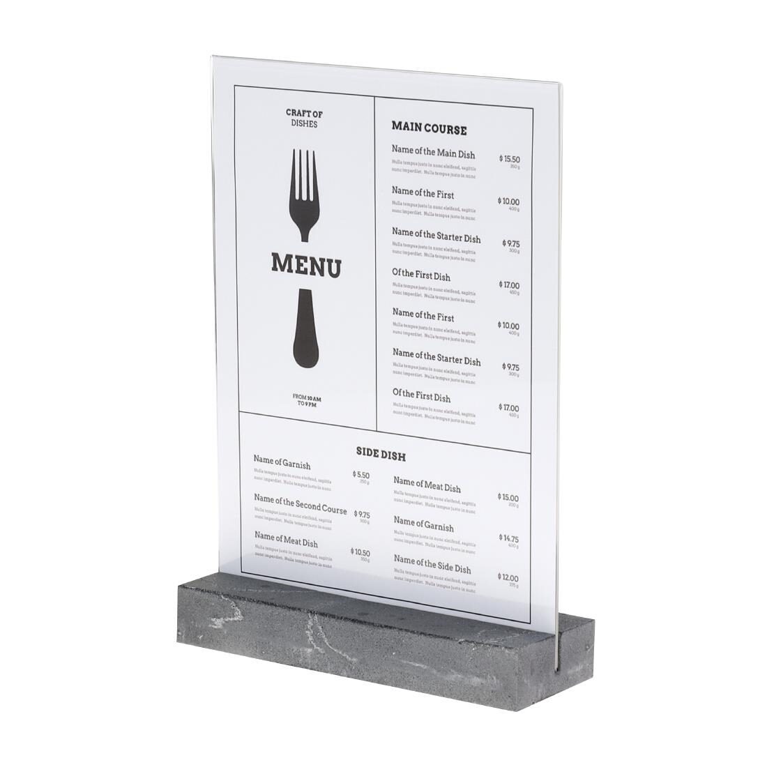Verhoog uw presentatie met onze premium A4 Portrait Bordhouder, ontworpen voor een verfijnde en kristalheldere presentatie van menu's, advertenties en andere belangrijke informatie. Gemaakt van hoogwaardig, kristalhelder acryl, biedt deze bordhouder een onberispelijke en professionele uitstraling die elke omgeving verbetert. De zware antraciet polystone basis zorgt voor stabiliteit en voegt een vleugje elegantie toe aan uw presentatie. Of het nu gaat om menu's in chique restaurants, promotiemateriaal in winkelomgevingen of informatieve displays in zakelijke omgevingen, onze A4 Portrait Bordhouder met een luxe zware antraciet polystone basis is de perfecte keuze voor een verfijnde en effectieve presentatie.