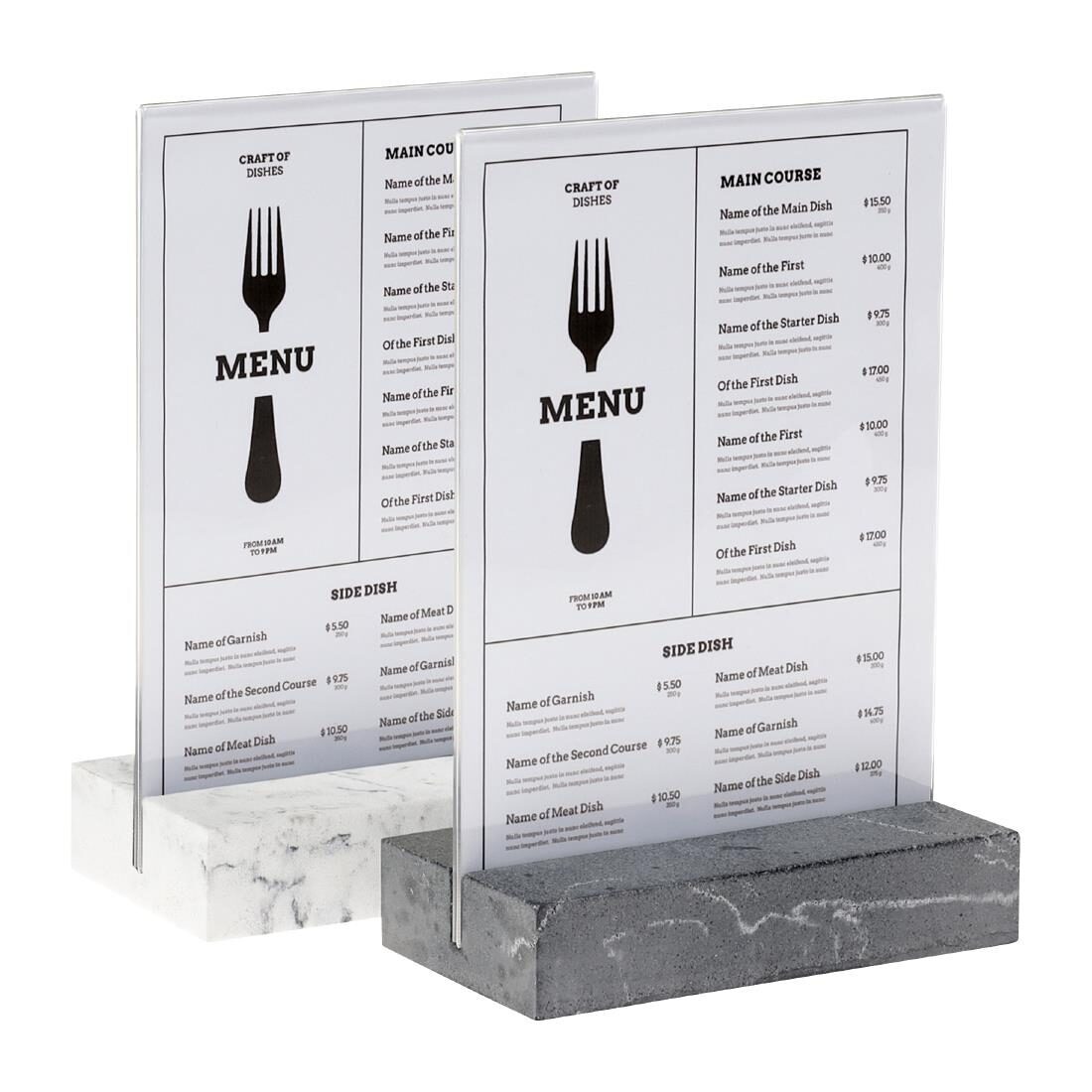 Verhoog uw display met onze premium A5 Portret Bordhouder, ontworpen voor een verfijnde en kristalheldere presentatie van menu's, advertenties en andere belangrijke informatie. Gemaakt van hoogwaardig, kristalhelder acryl, biedt deze bordhouder een onberispelijke en professionele uitstraling die elke omgeving verbetert. De zware witte polystone voet zorgt voor stabiliteit en voegt een vleugje elegantie toe aan uw display. Of het nu gaat om menu's in chique restaurants, promotiemateriaal in retailomgevingen, of informatieve displays in zakelijke settings, onze A5 Portret Bordhouder met een luxe zware witte polystone voet is de perfecte keuze voor een verfijnde en effectieve presentatie.